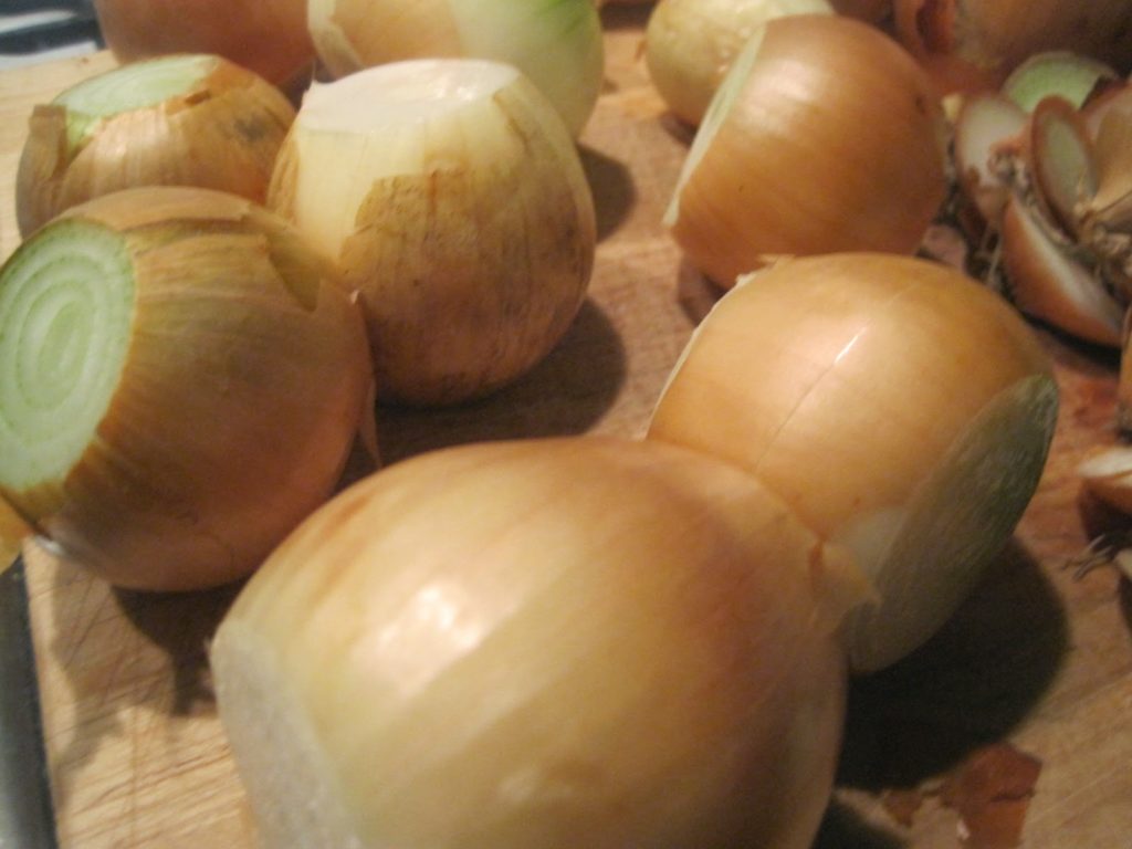 1 Kilo Zwiebeln enthäuten