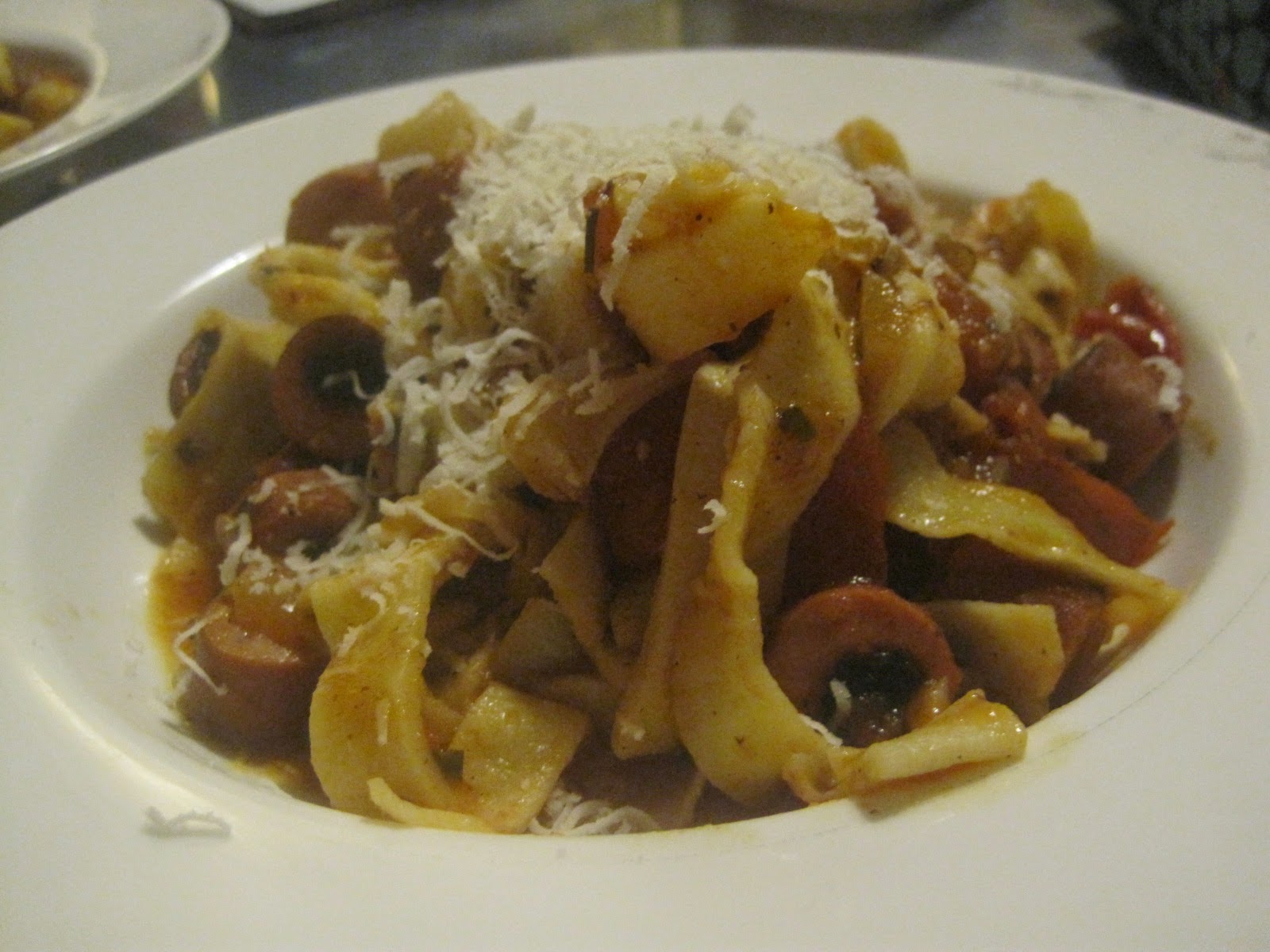 Bandnudeln mit Würstchen