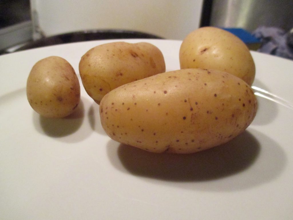 Kartoffeln auf den Teller geben. Da kann man ganz gut sehen, wie dünn die Schale ist.