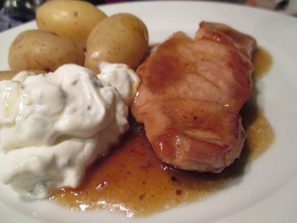Schönes zartes Fleisch, tolle Kartoffeln, ein leckerer Quark, der die beiden Elemente miteinander verbindet und eine kräftige Soße, die weder fett noch kleisterig ist und das Ganze abrundet.