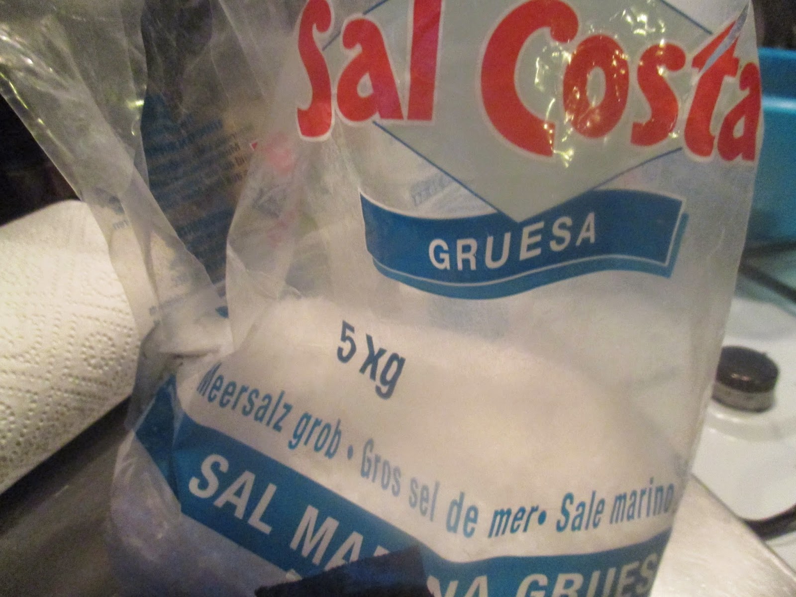 Das hier ist jetzt Luxus, grobes Meersalz. Man kann natürlich auch normales Salz benutzen.