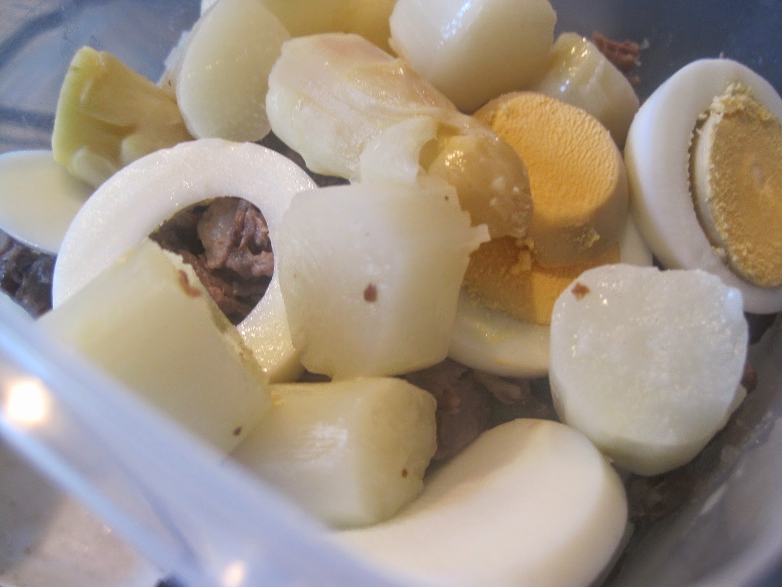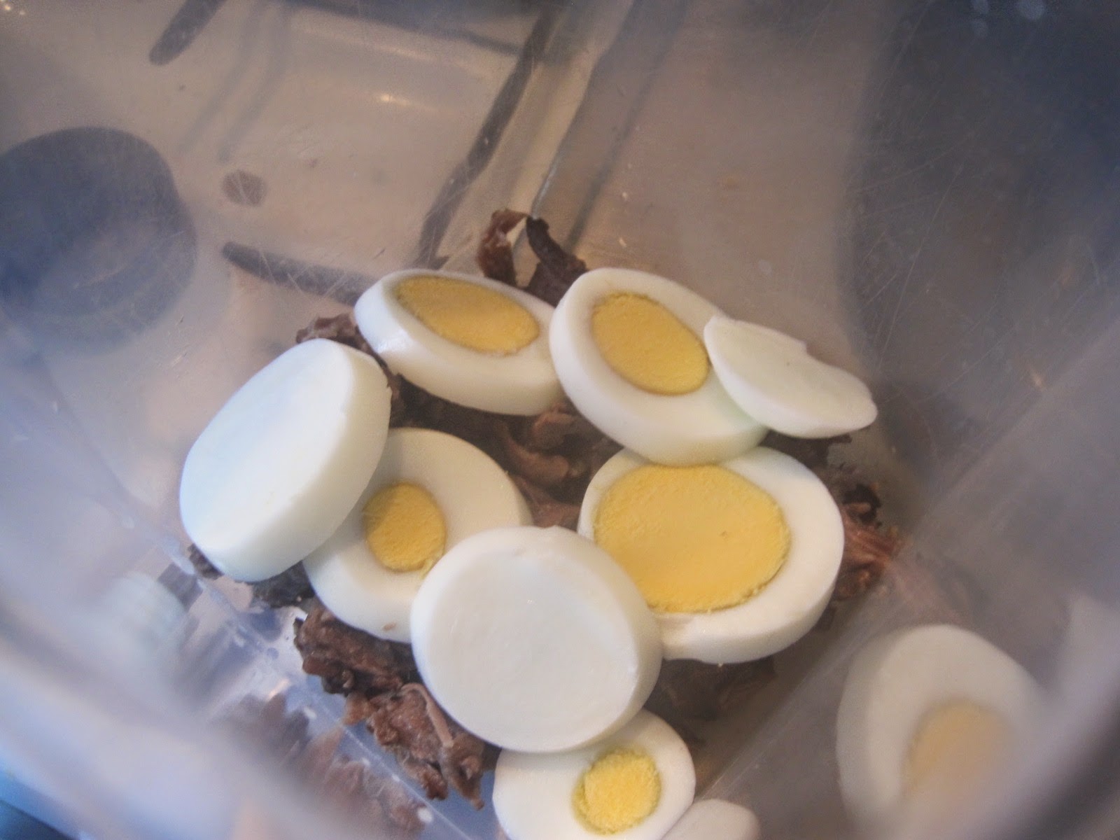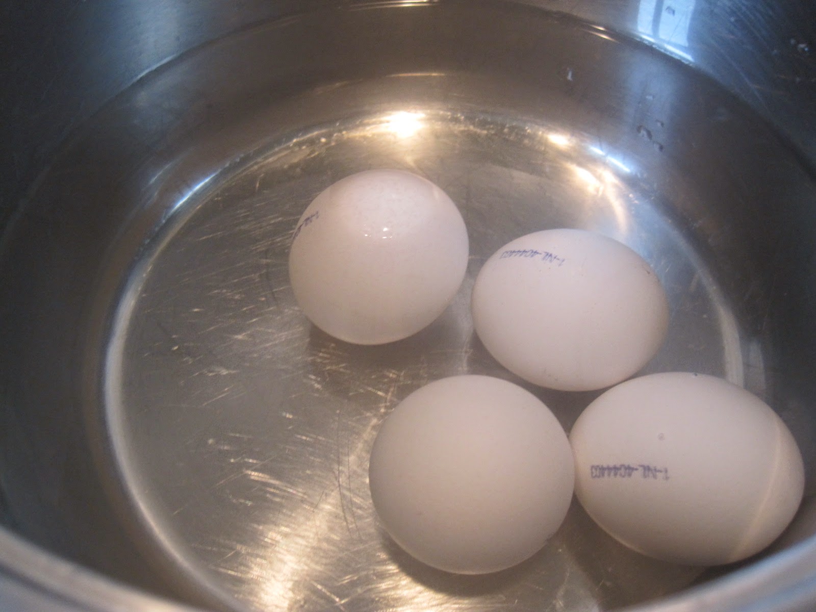 Die vier Eier habe ich schon vorher in zehn Minuten hart gekocht.