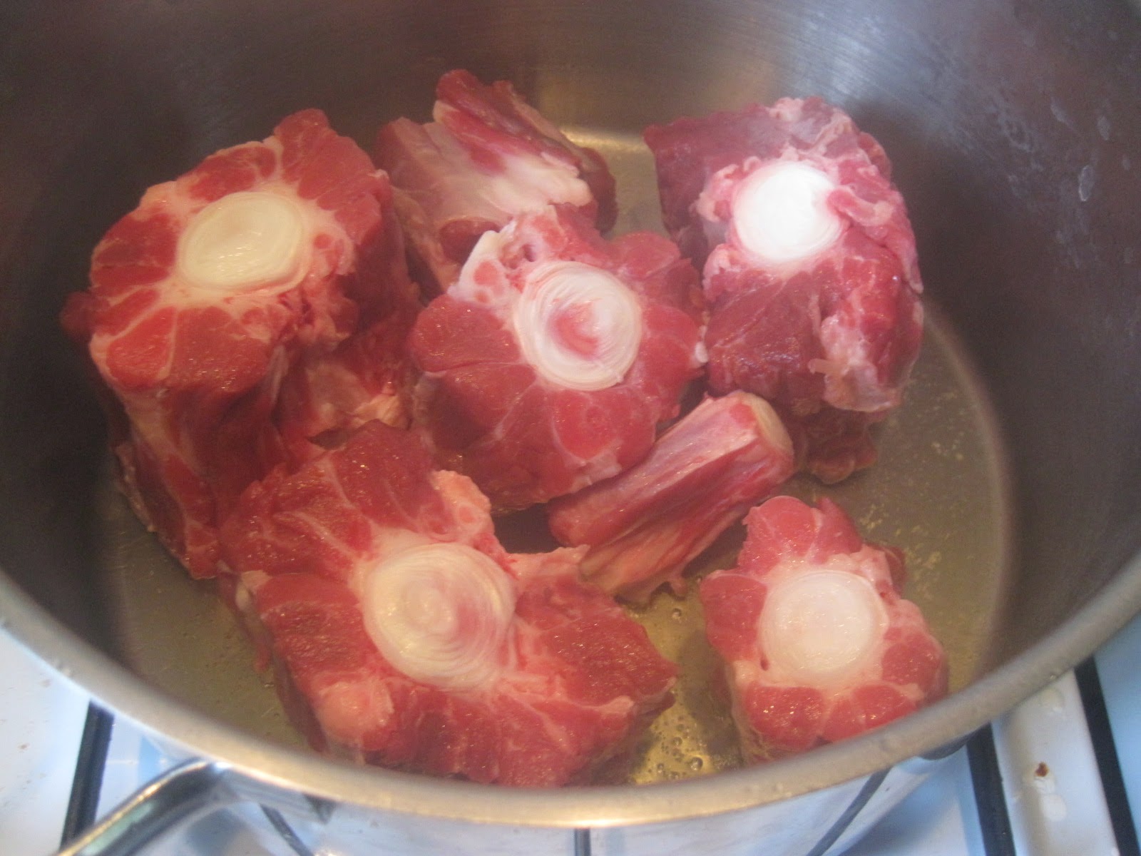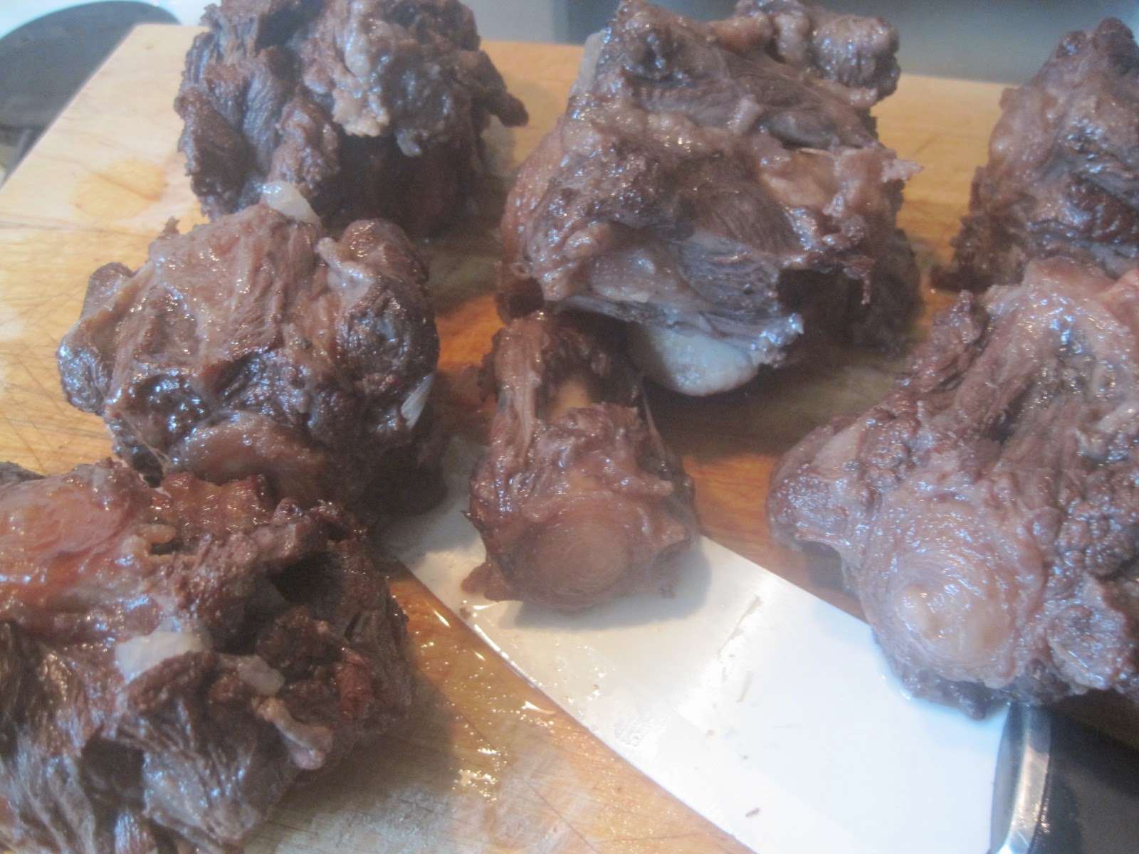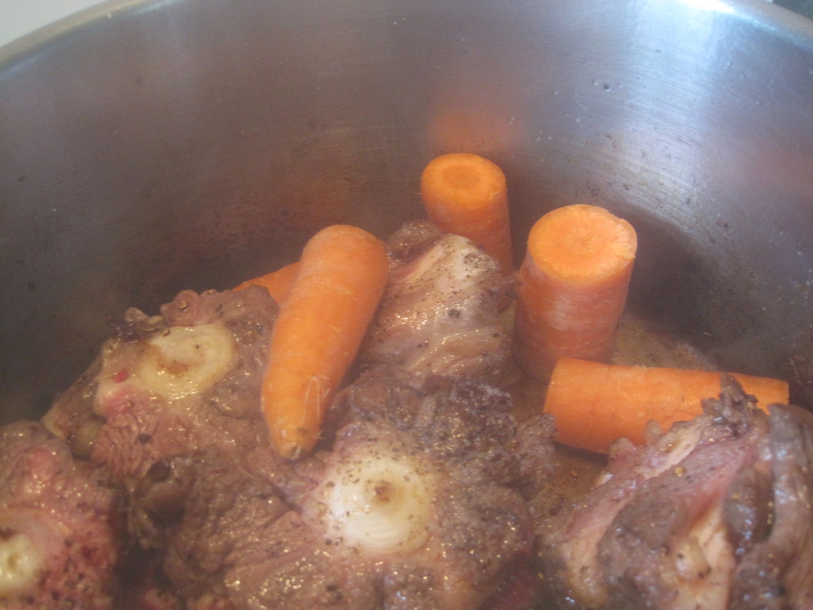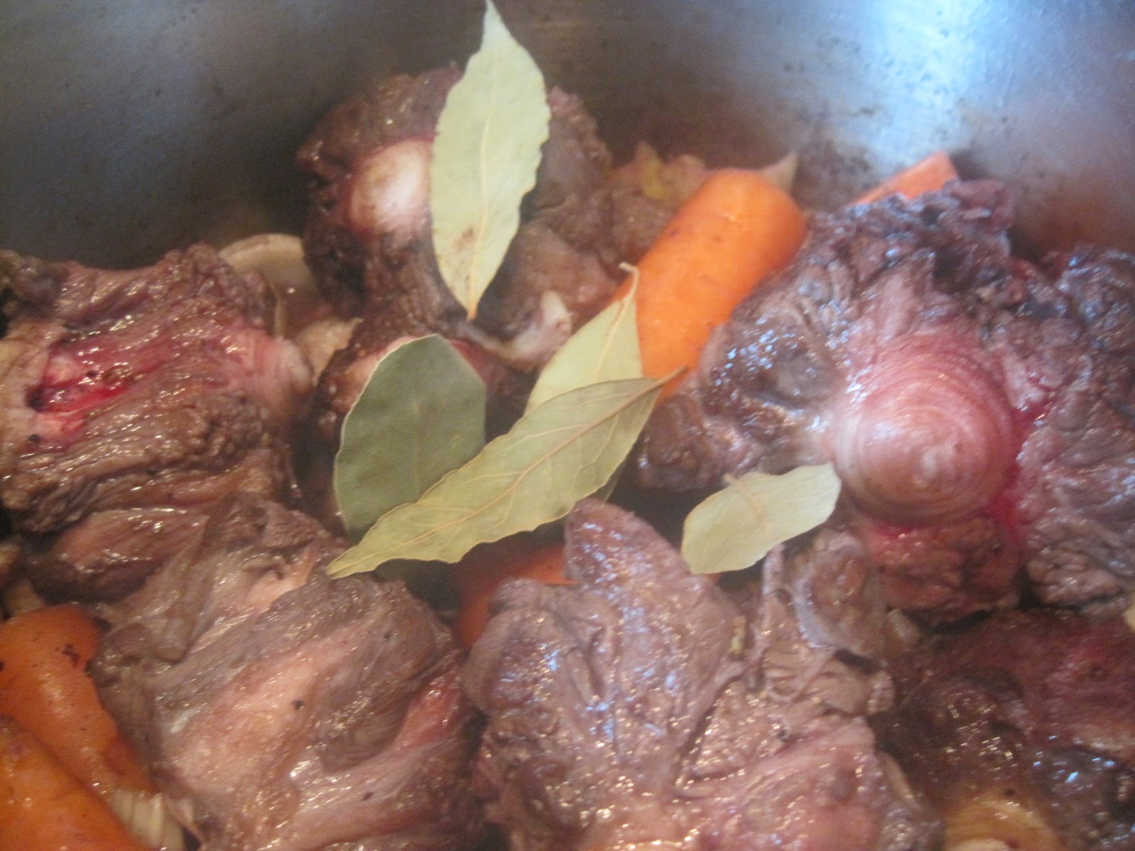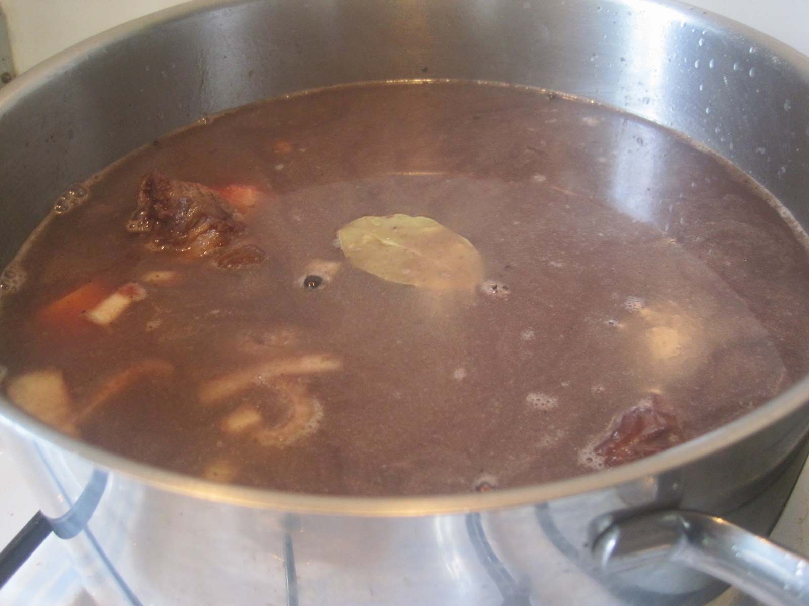 Die erste Amtshandlung ist die Brühe, in der die Ochsenschwänze ausgekocht werden.
