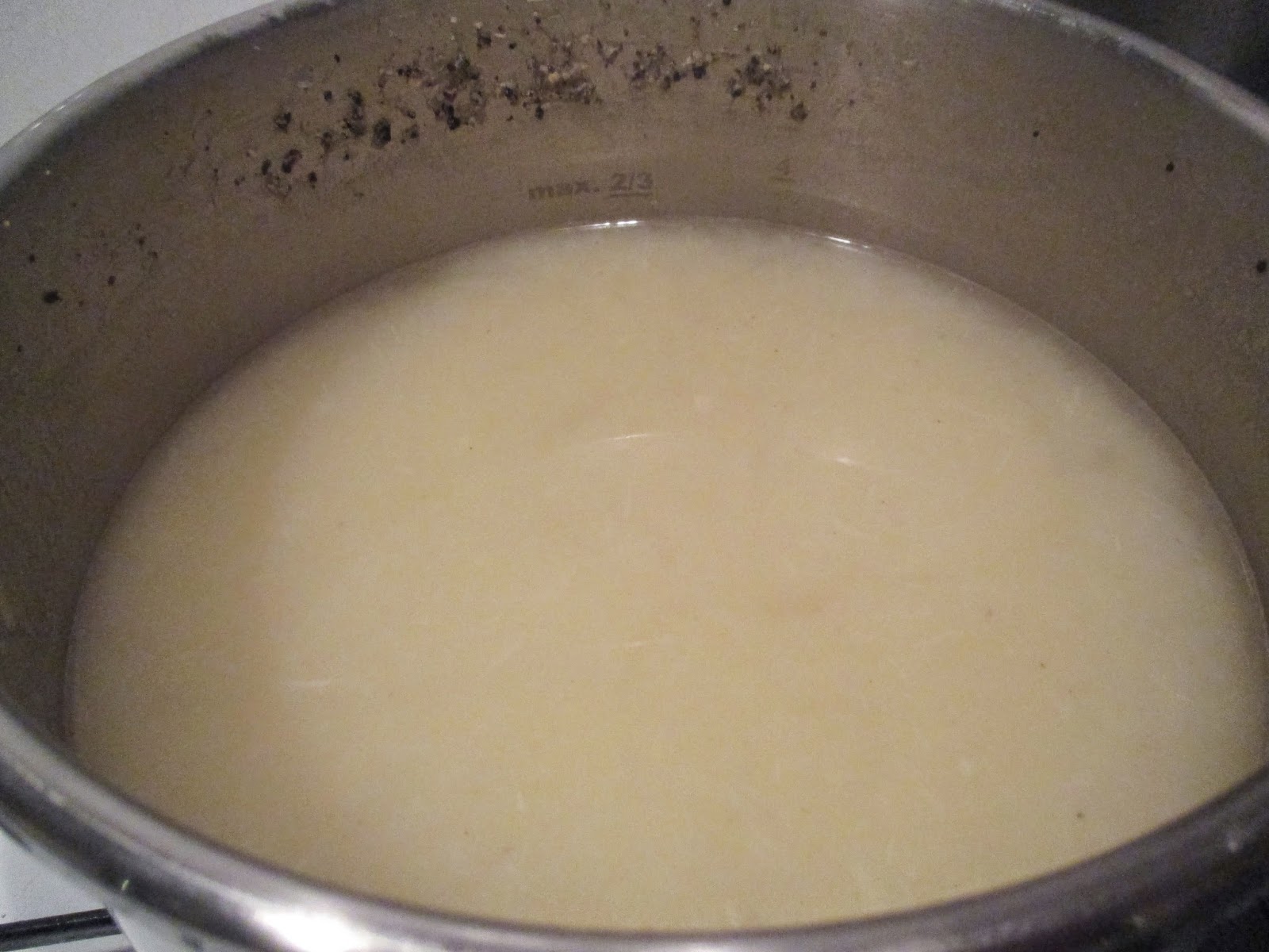 Ich fülle den Topf bis zu 2/3 auf, das sind bei meinem Topf zusätzliche 3 Liter Wasser, die noch auf den Spargelsud passen. Natürlich braucht das dann auch wieder Salz, Pfeffer und Zucker, damit es weiterhin nach etwas schmeckt, aber den Sud als Basis, nimmt Euch keiner mehr weg.