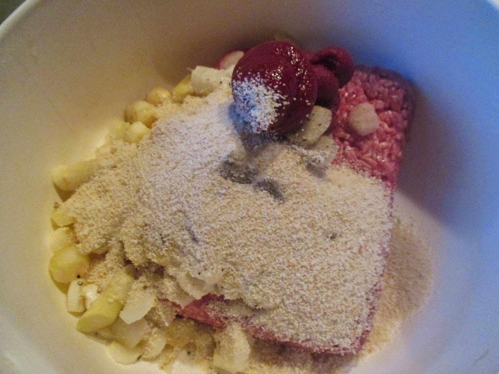 Spargel in dünne Scheiben schneiden, damit man ihn unter das Hackfleisch kneten kann.