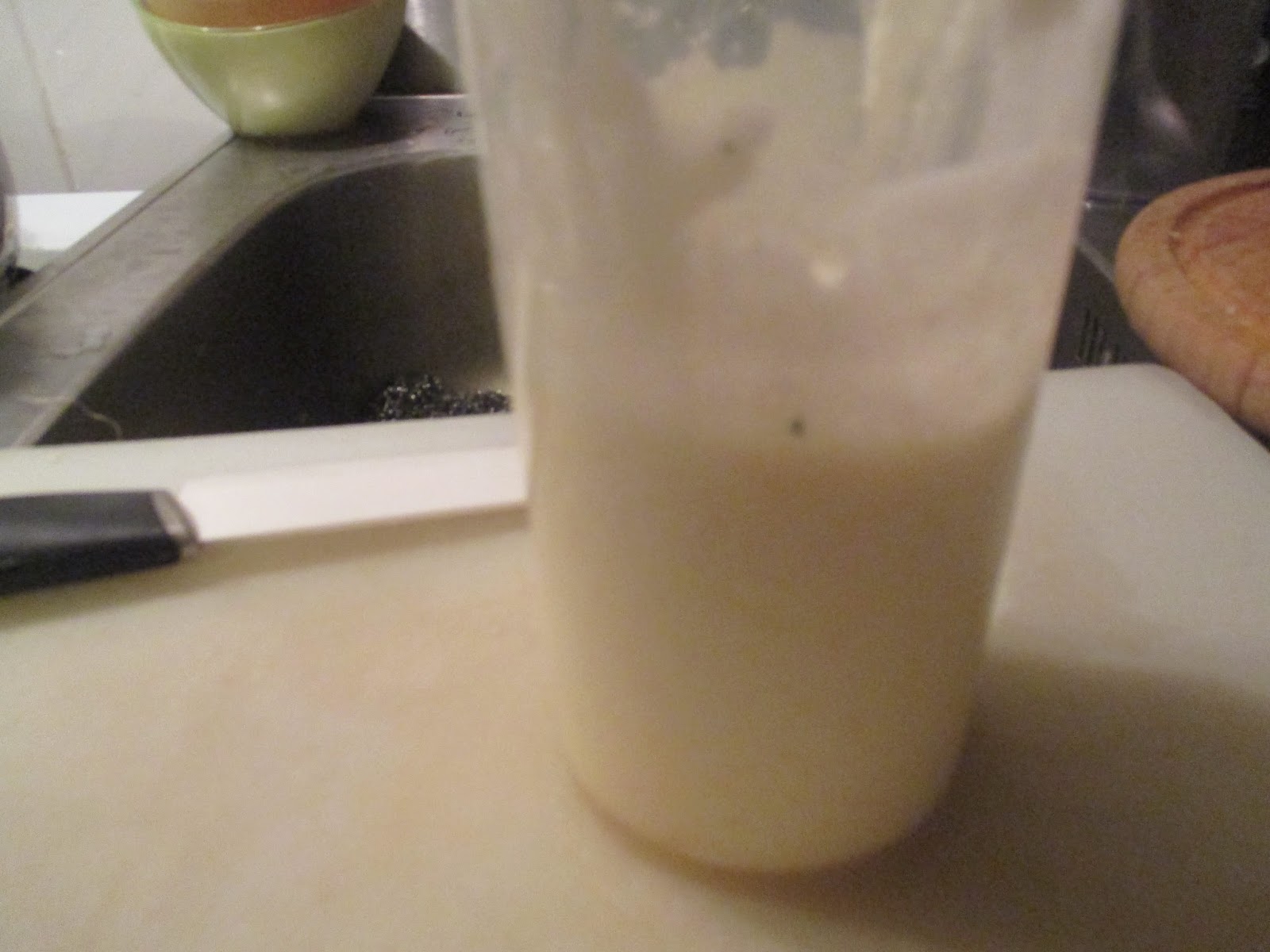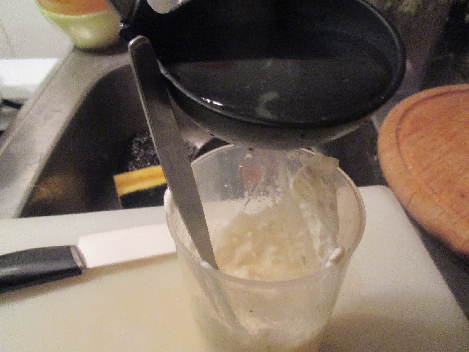 Eine Kelle vom Kochwasser des Blumenkohls dazu geben. Ihr bestimmt selbst, wie dickflüssig Ihr das Dressing haben wollt.