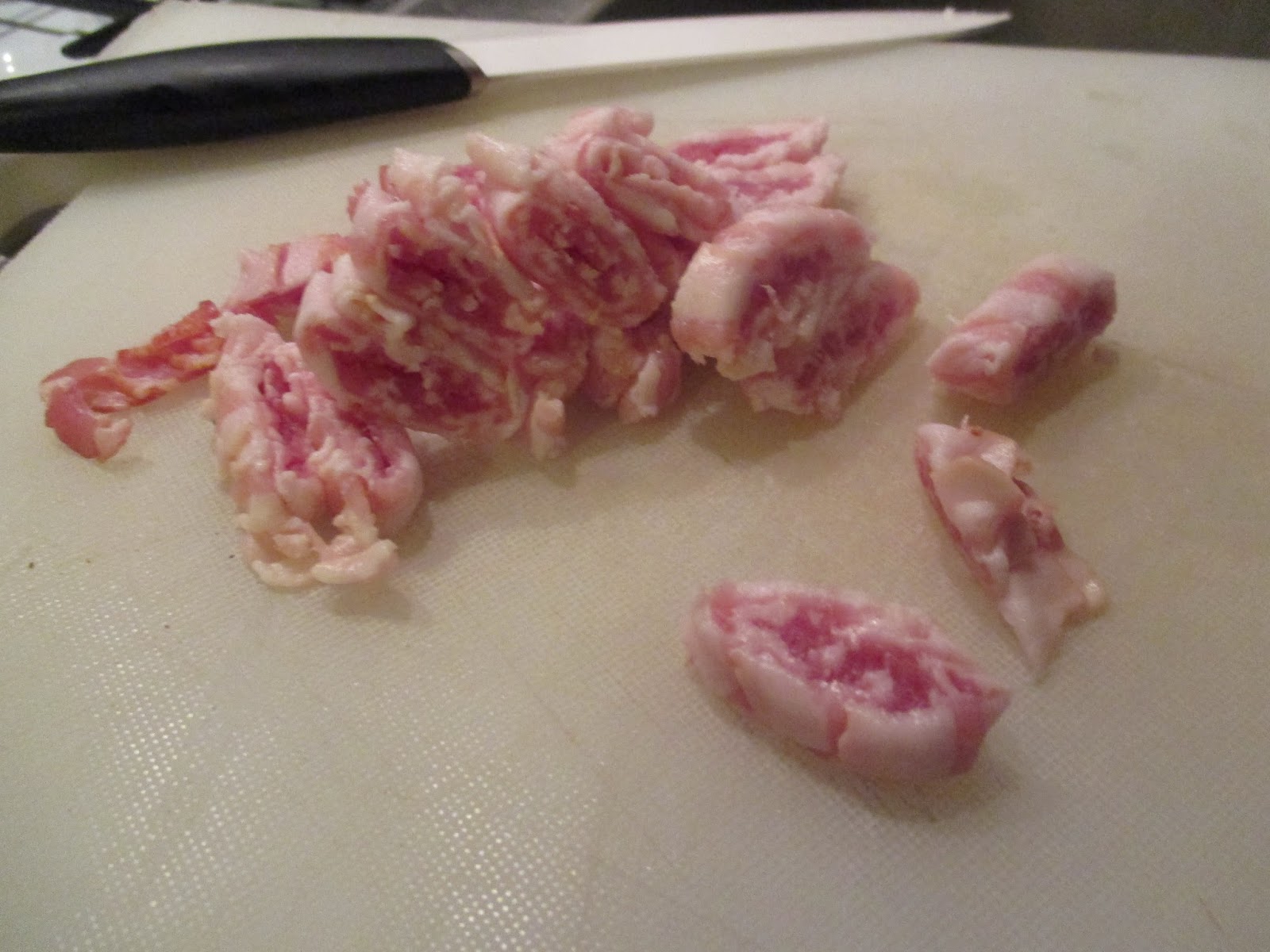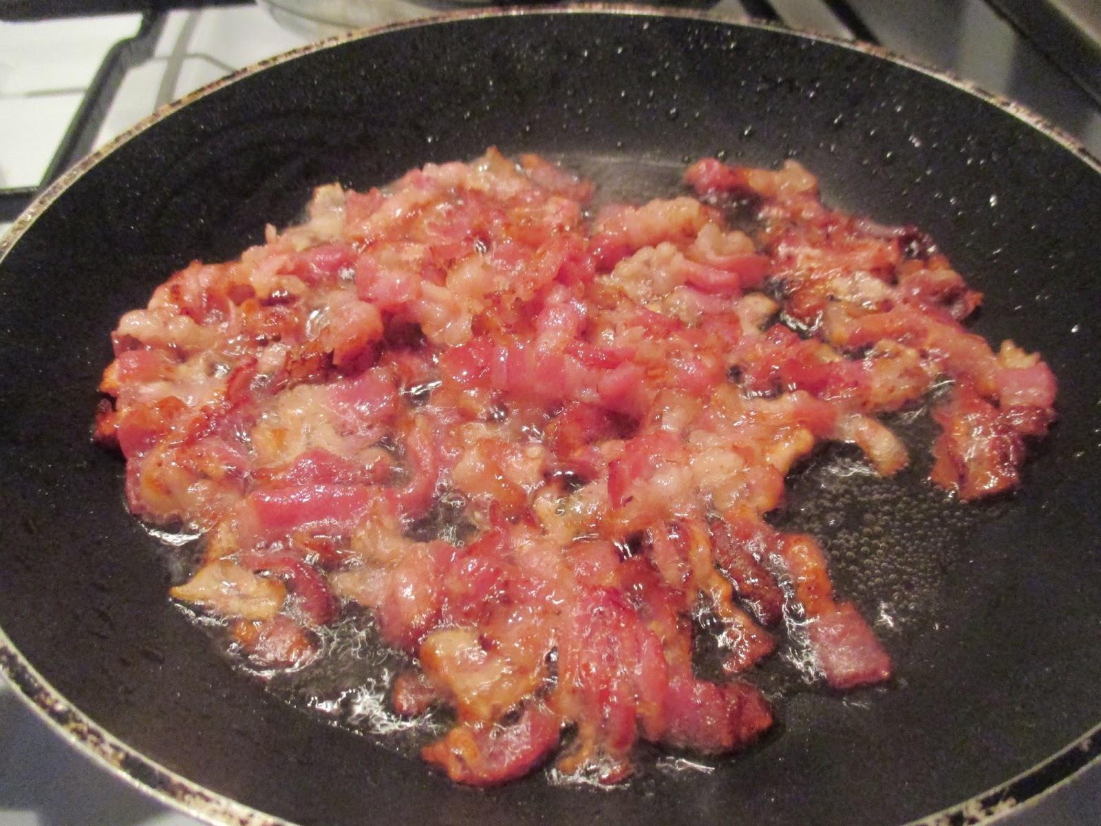 Für den guten Geschmack, braten wir jetzt noch ein wenig Bacon aus.