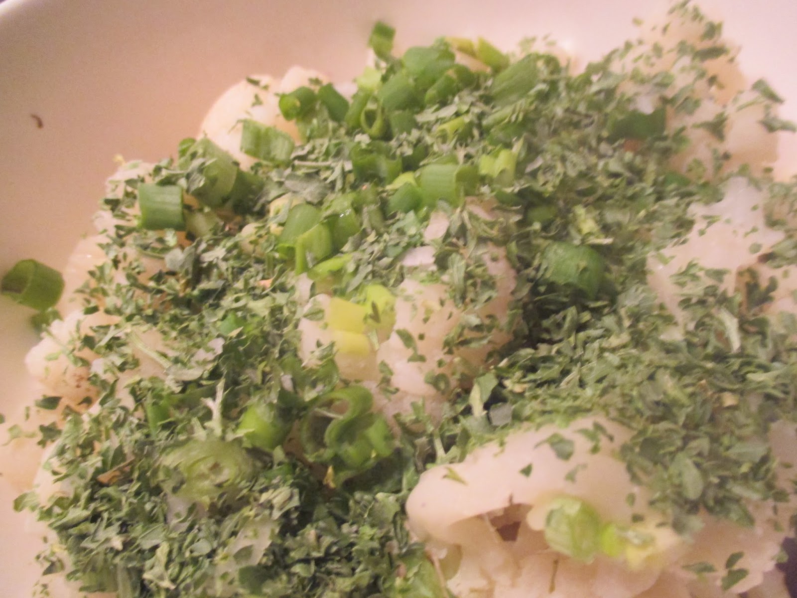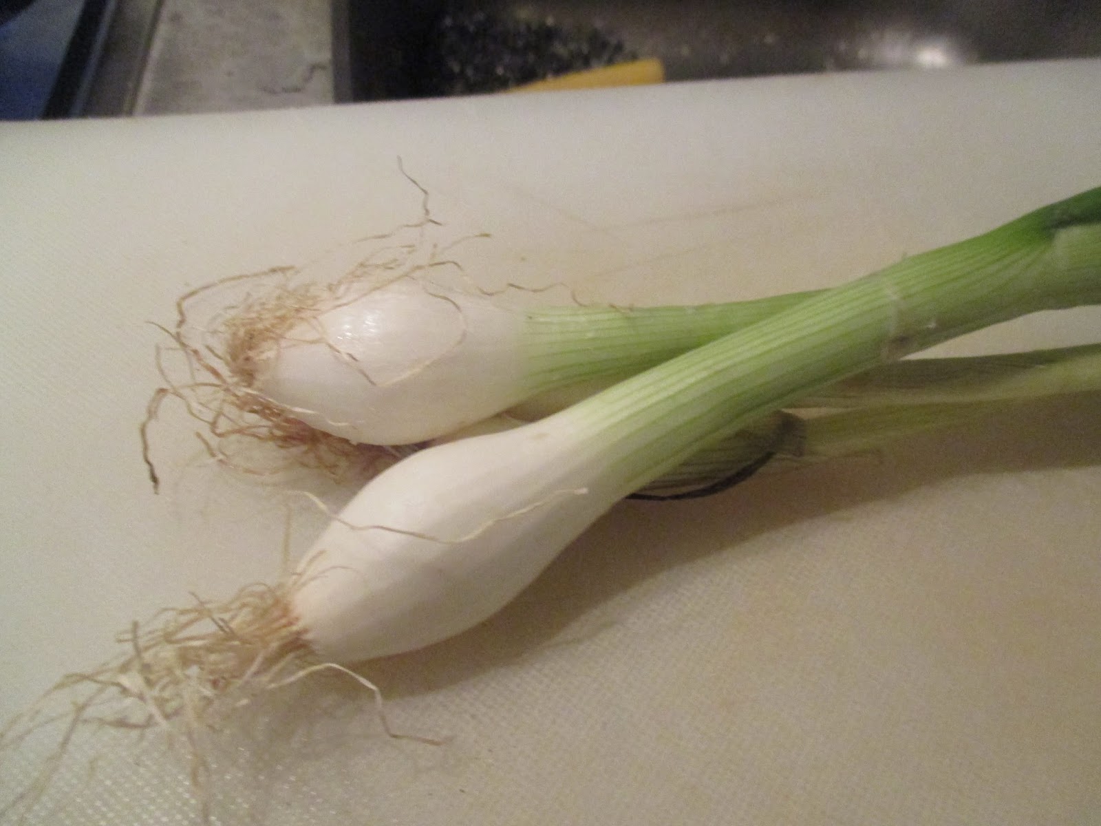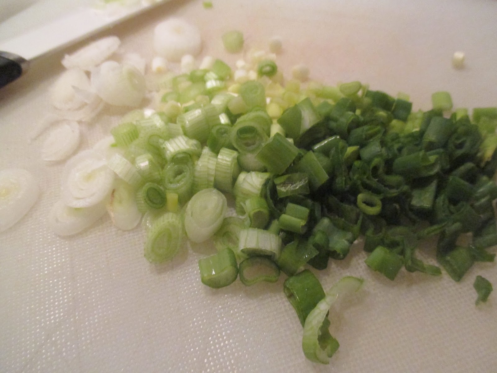Lauchzwiebeln häuten und in kleine Stücke schneiden.