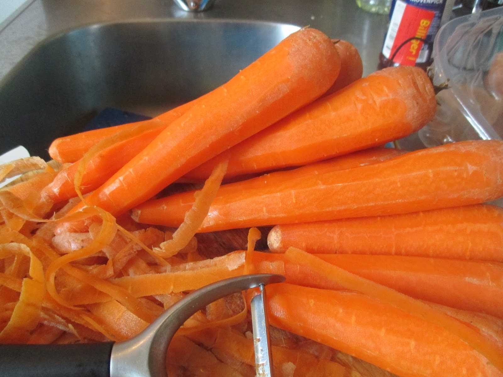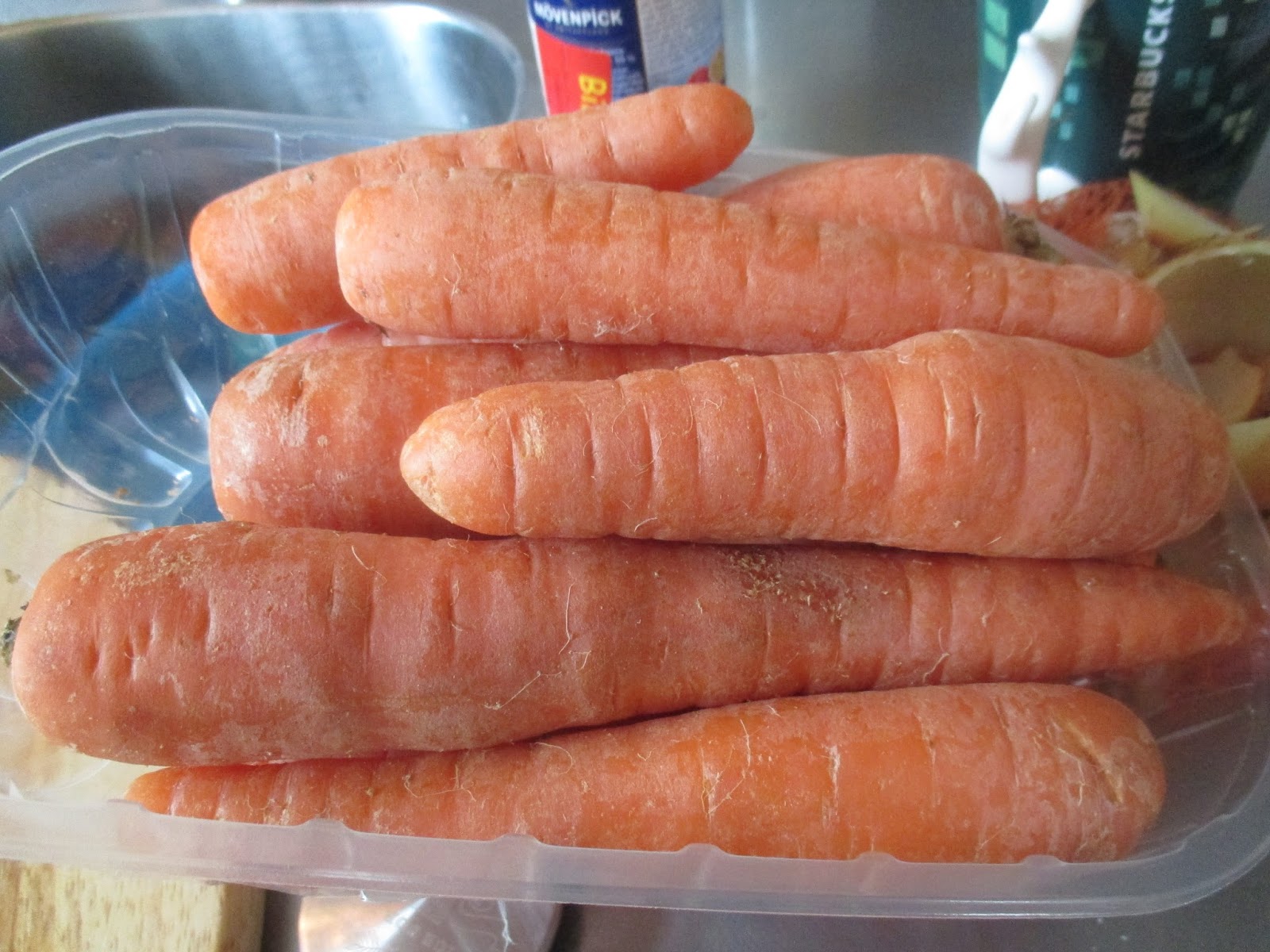 Ich habe ein Kilo bio Möhren genommen. Weil Ihr zuschaut, habe ich die sogar geschält.