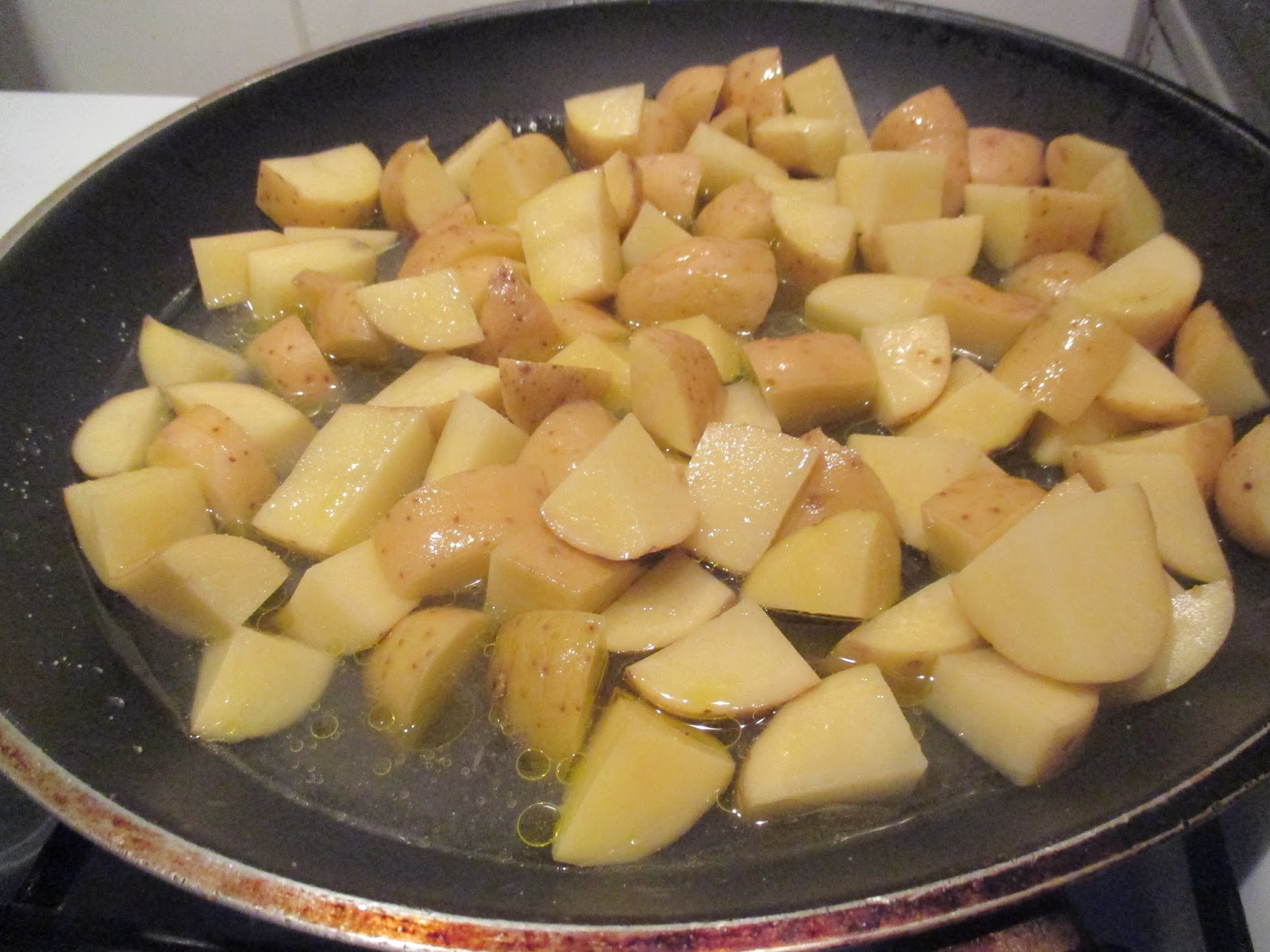 Olivenöl in der Pfanne erhitzen