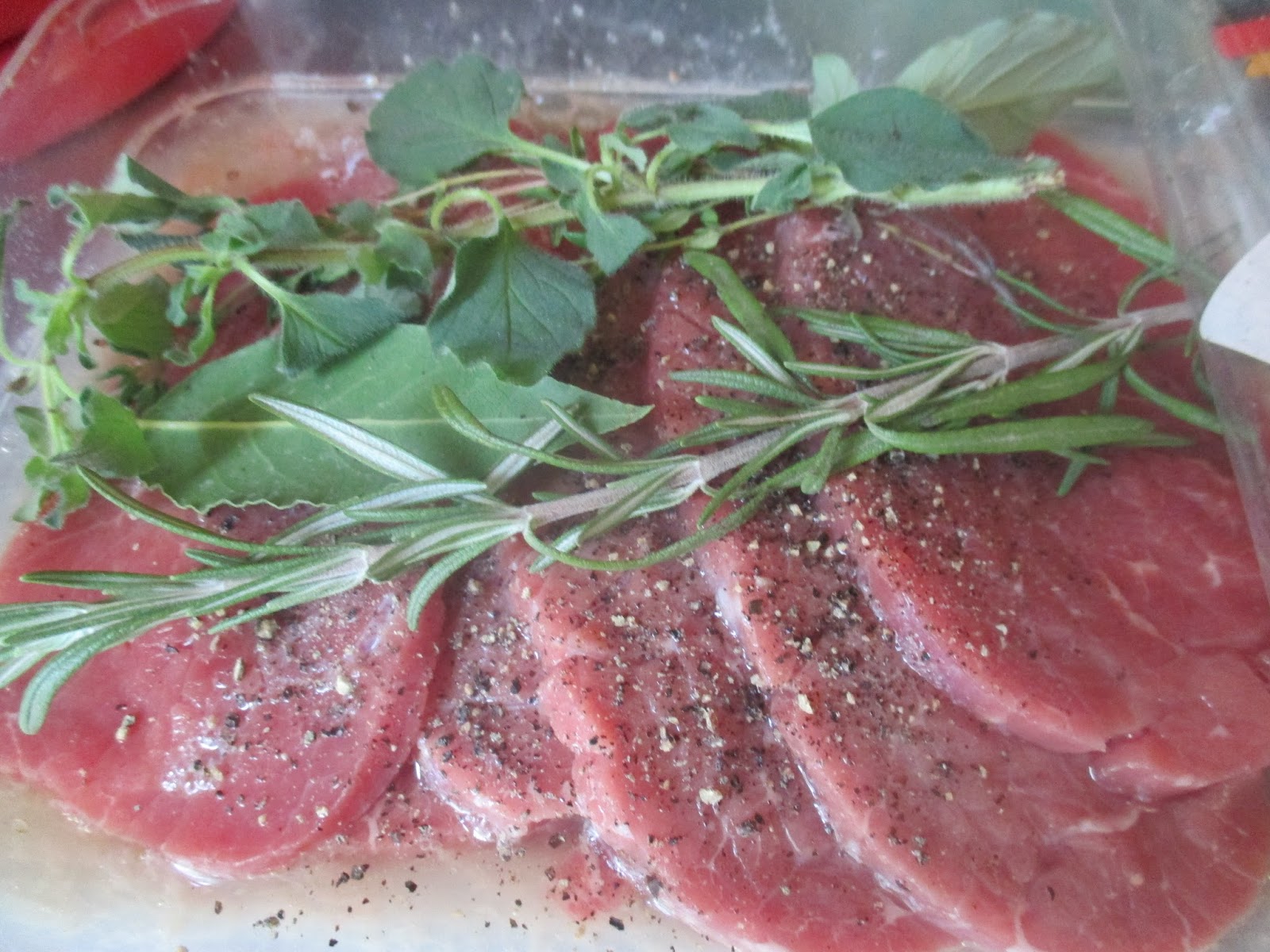 Wegen der verkürzten Haltbarkeit und weil ich mir zwei Pakete geholt hatte, habe ich dieses Paket in Gewürze, Öl und Wein eingelegt, damit es den nächsten Tag noch erlebt.