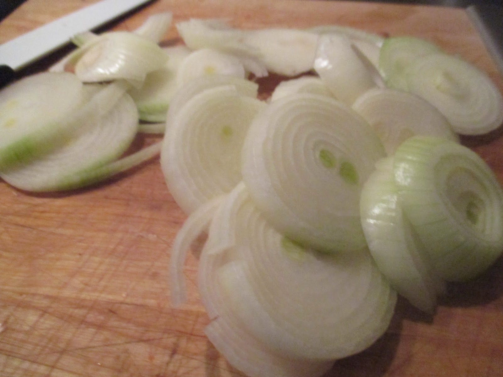 Die Zwiebeln häuten und in Ringe schneiden.