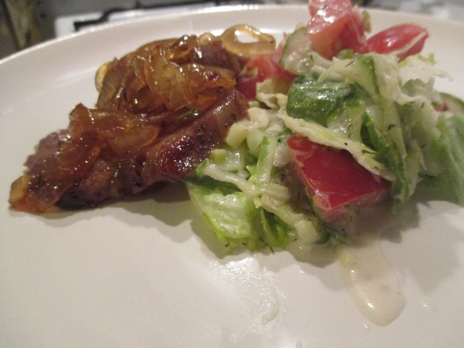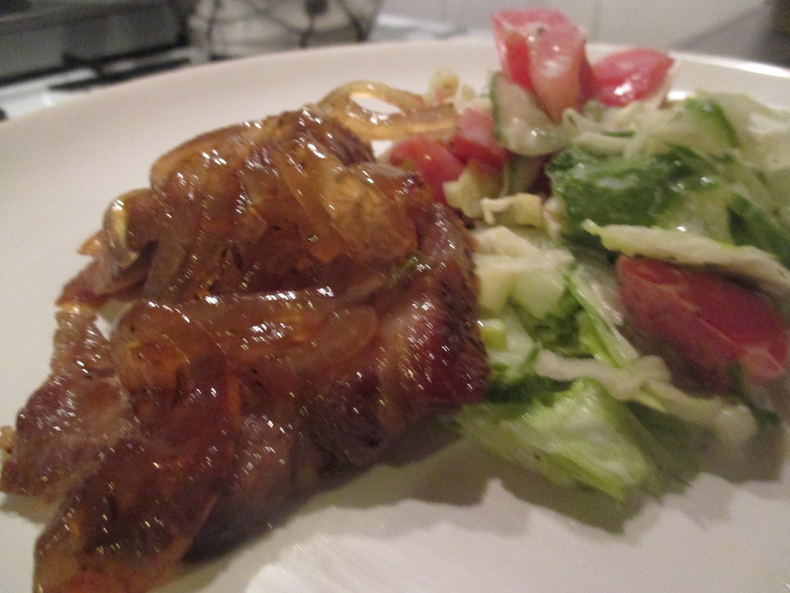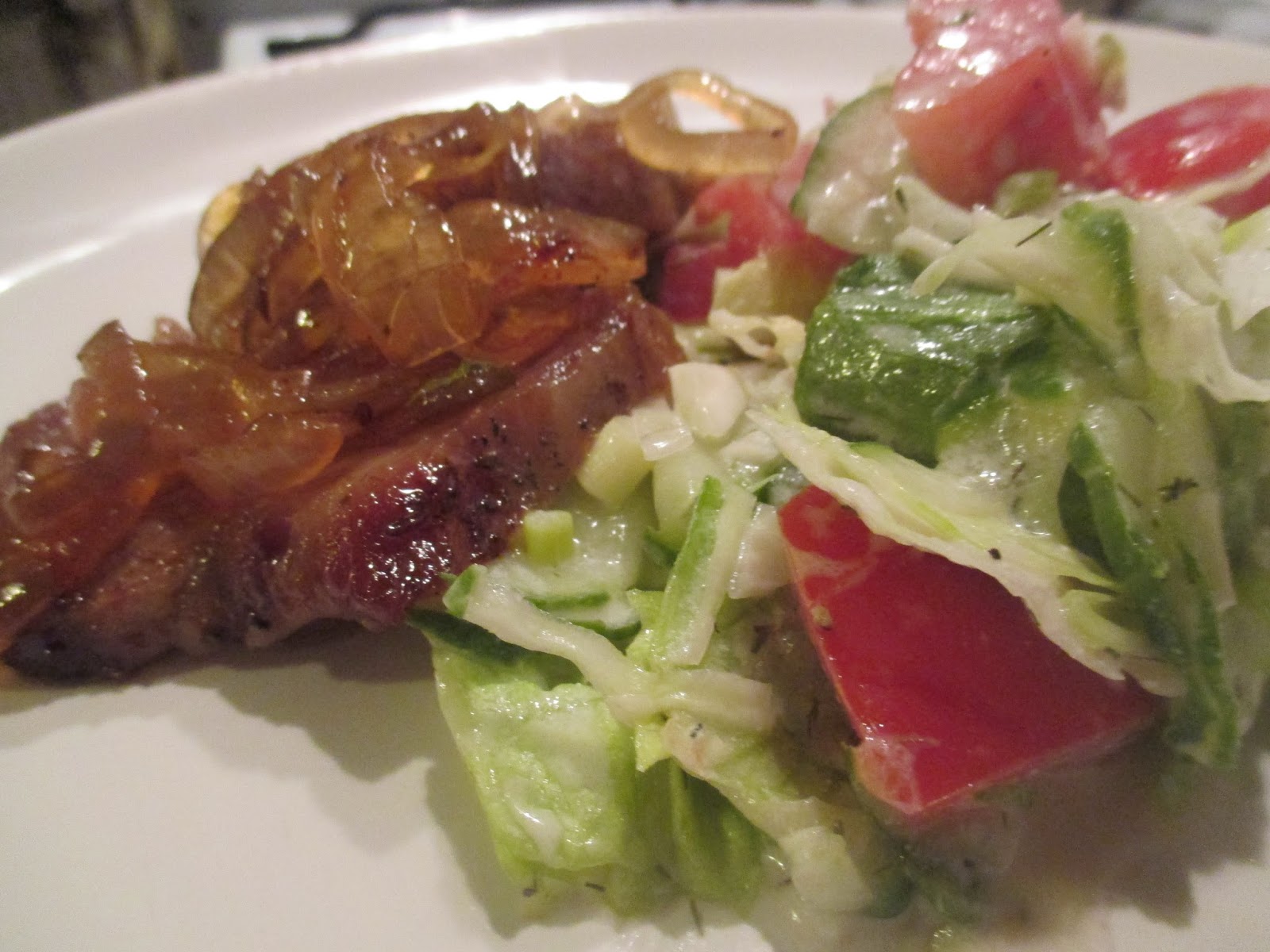 Man kann zu dem Fleisch natürlich noch richtig Kohlenhydrate in Form von Kartoffeln servieren, aber ich dachte, so als Reminiszenz an den Sommer, wäre ein frischer Salat zum Fleisch eine tolle Kombination.