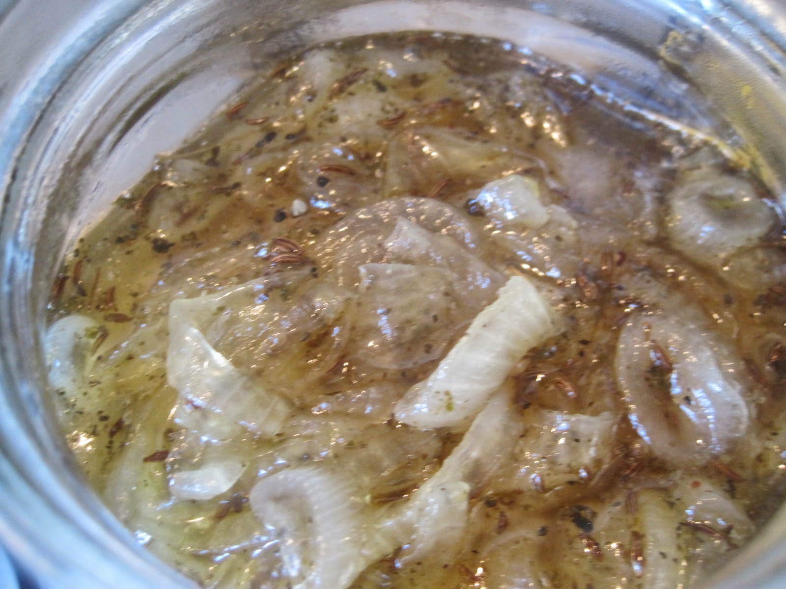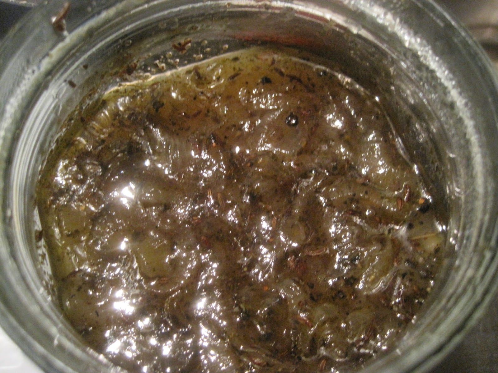 Hier habe ich die fertige Zwiebelmarmelade in ein Marmeladenglas gegeben, damit es auskühlen kann und hinterher gut im Kühlschrank zu lagern ist.