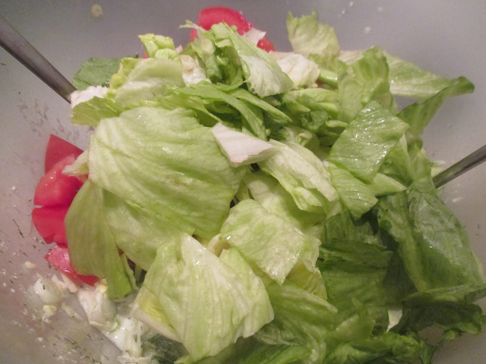 Auch der Eisbergsalat, wird erst direkt vor dem Servieren unter den Salat gemischt.