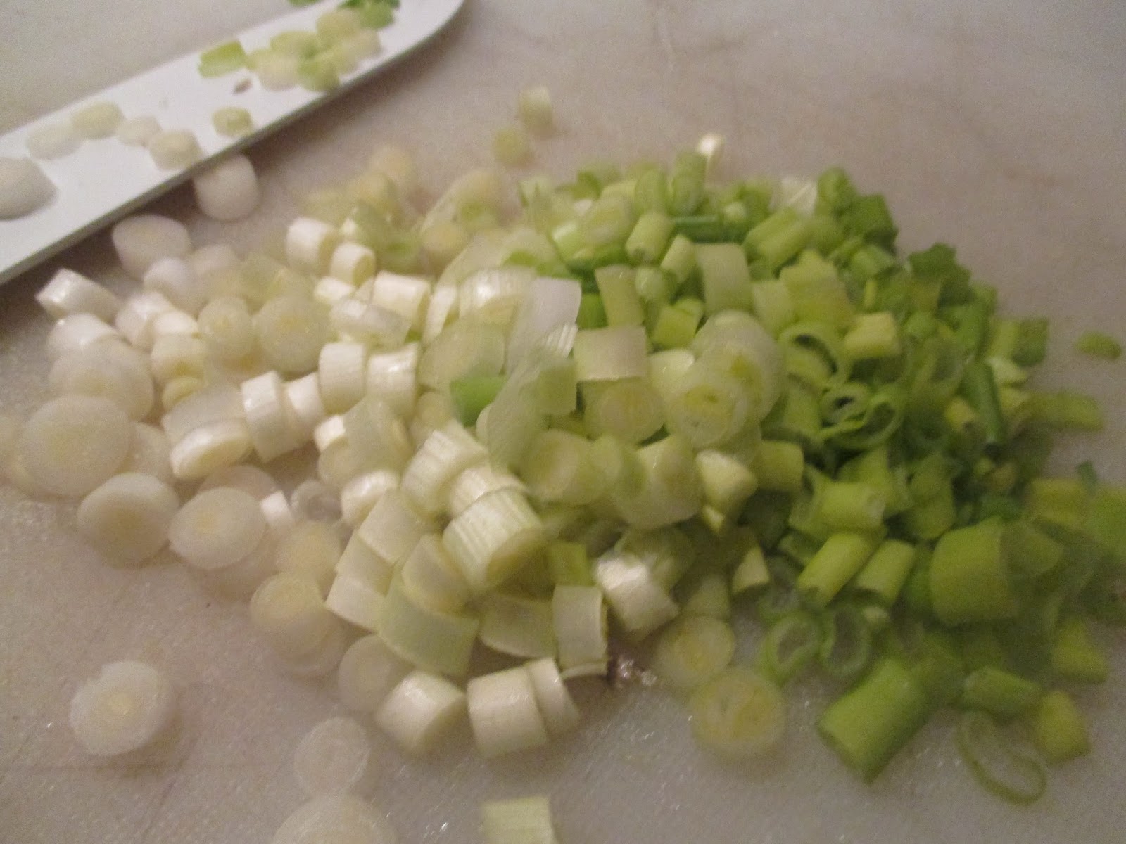 Lauchzwiebeln zerkleinern.