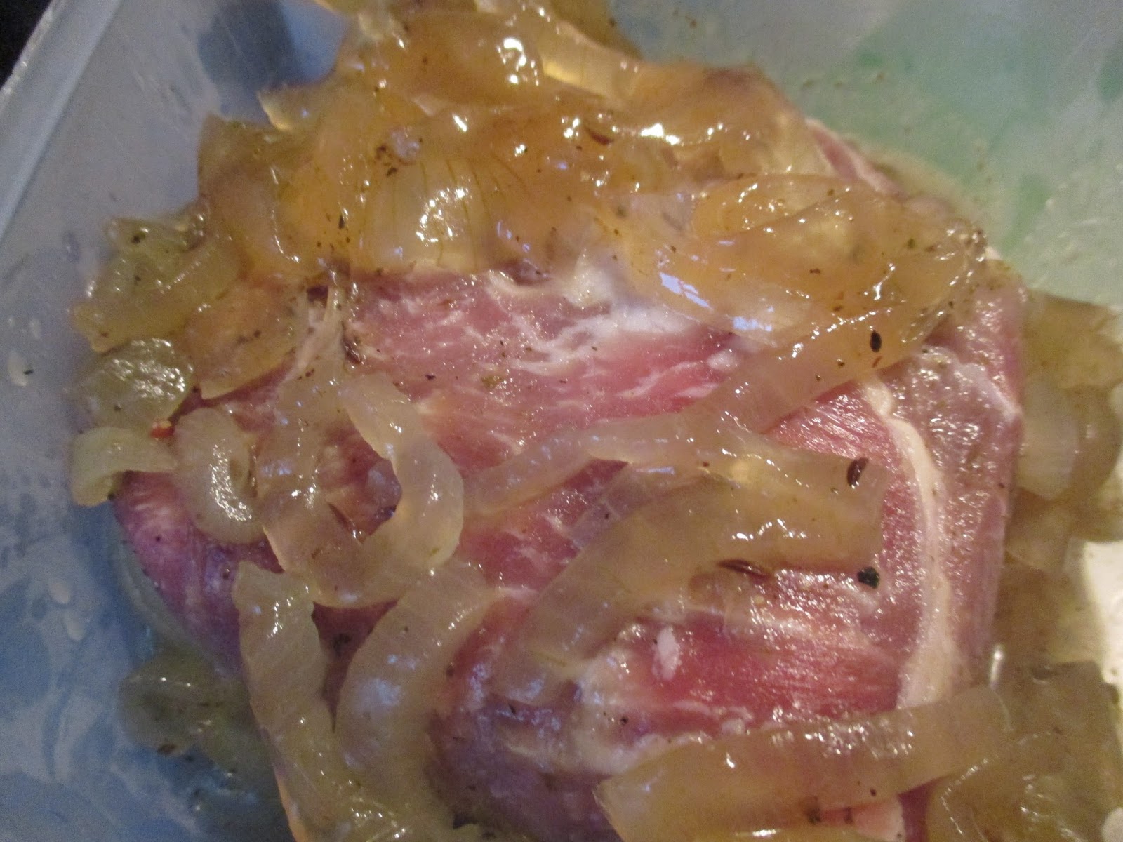 Den Schweinenacken habe ich eine Gefrierdose gelegt.