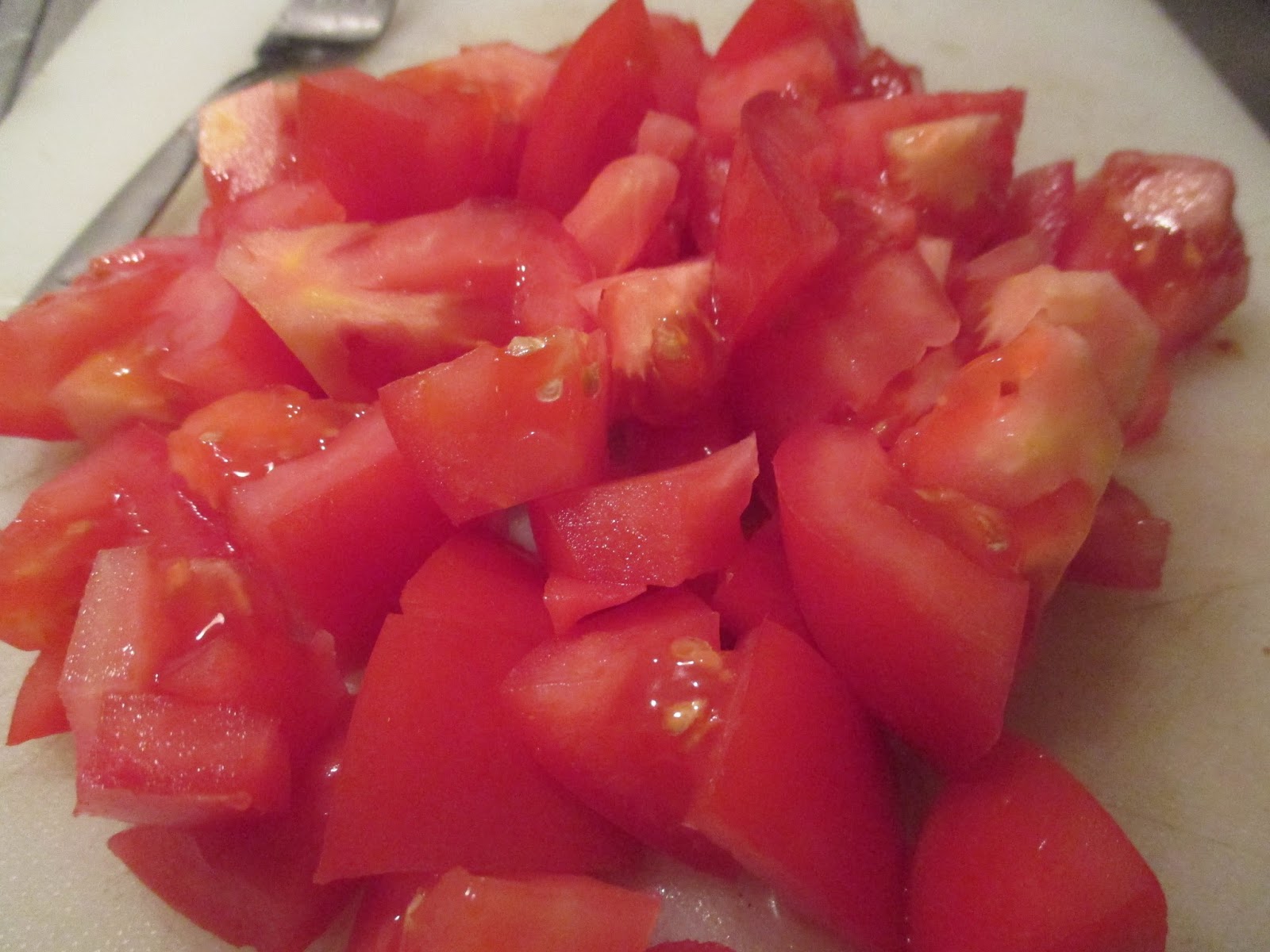Tomaten in Stücke schneiden.