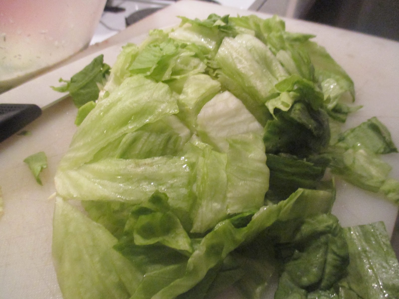 Eisbergsalat in mundgerechte Stücke schneiden.