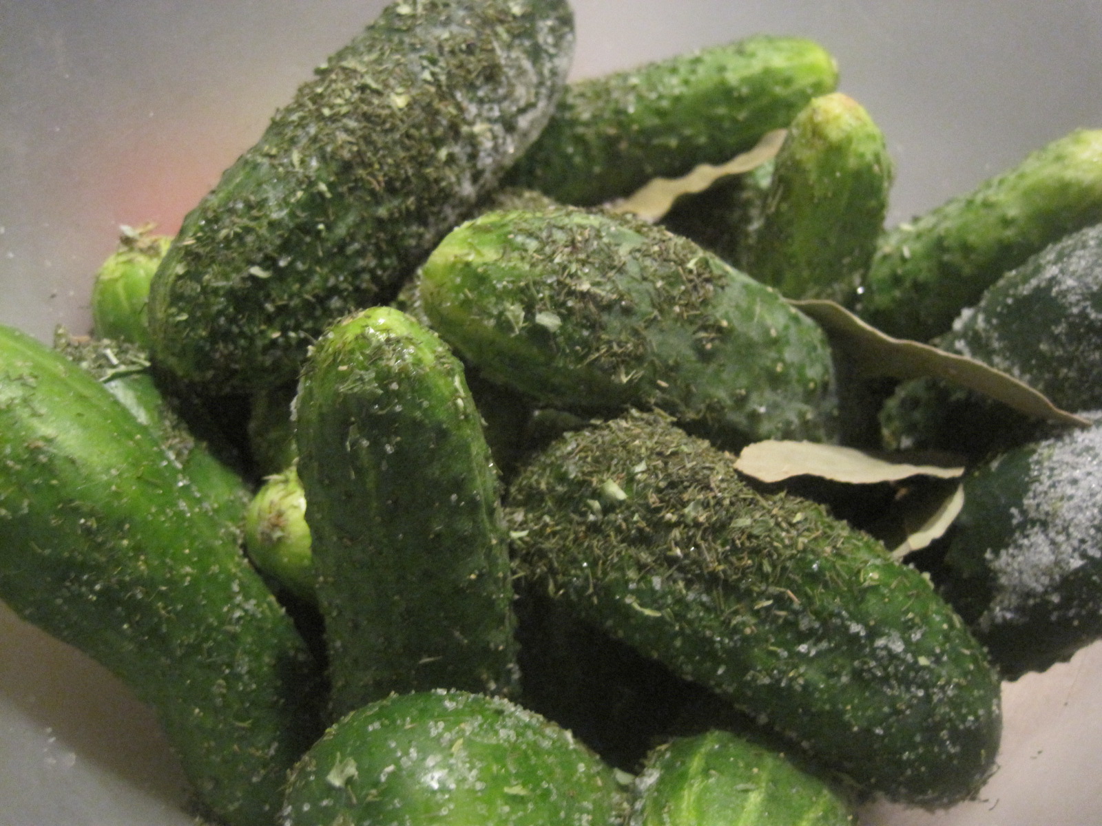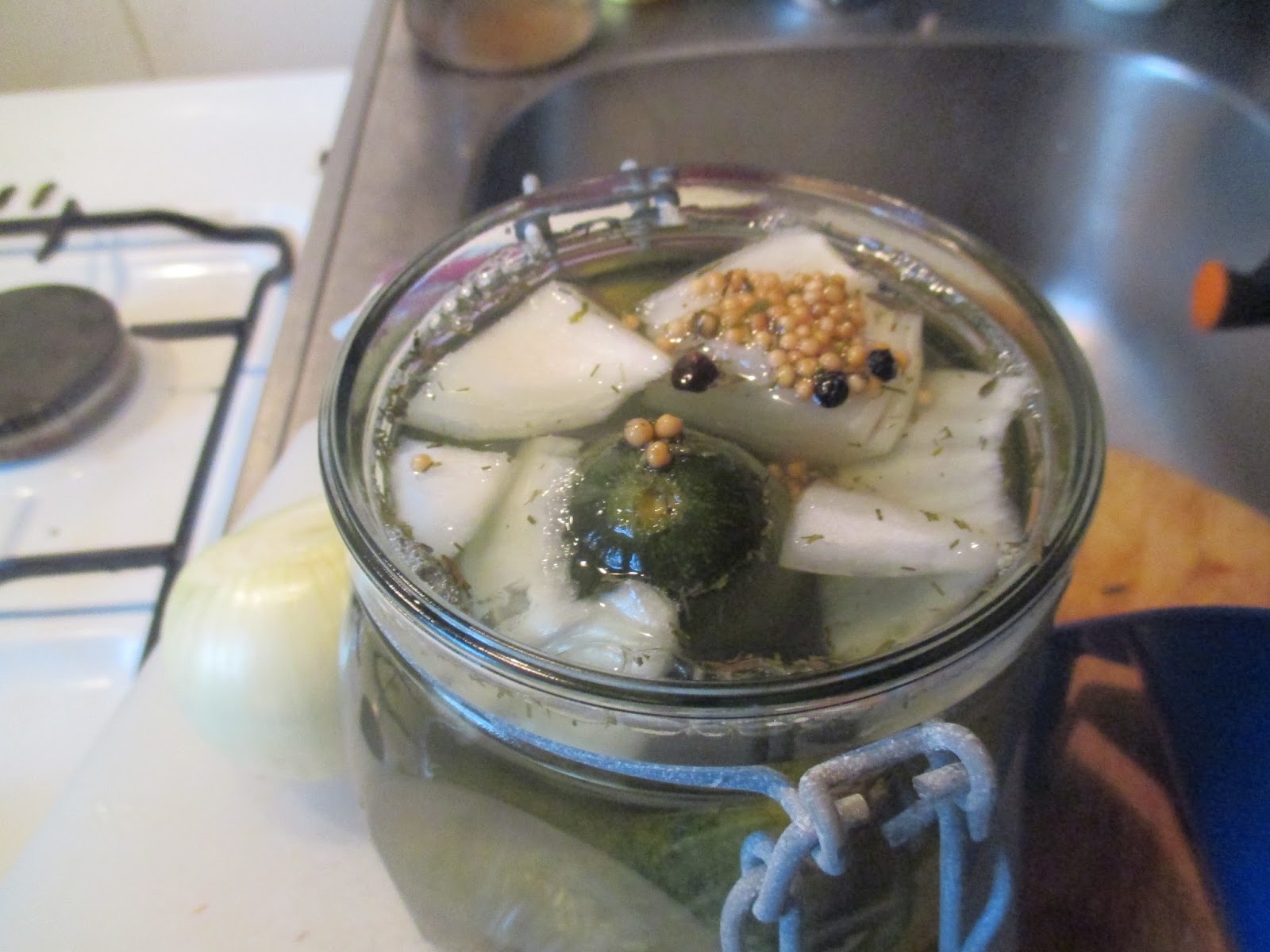 Die wird nun auch noch in die Gläser gestopft, man kann die aber auch schon gleich beim Einlegen zu den Gurken geben. Das schadet dem Geschmack auf keinen Fall.