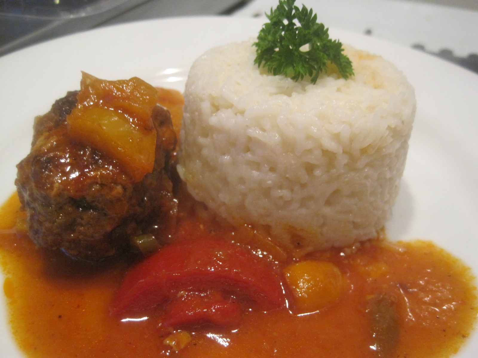 Natürlich kann man das auch als großes Essen für die Familie zubereiten, aber ich habe mir diese Woche zum Ziel gesetzt anhand von Hackfleischrollen zu demonstrieren, wie man sein Essen ständig anders aussehen lassen kann und dabei nie das Gefühl bekommt, immer das gleiche zu Essen. Nur weil ich schaffe daraus fünf Gerichte zu machen, müsst Ihr natürlich nicht fünf Tage das gleiche Essen. Ich will nur zeigen, dass man mit ein wenig Vorratshaltung und Lagertechniken schafft, auch mal schnell etwas Leckeres aus dem zaubern kann, wofür man vorher schon mal ein wenig Mühe aufgebracht hat. Das kann man dann im Kühlschrank, oder in der Truhe aufbewahren, oder das Letschon im Glas einkochen und dann fügt man im Fall der Fälle nur noch den frischen Reis dazu und ist nach weniger als einer halben Stunde am Tisch.