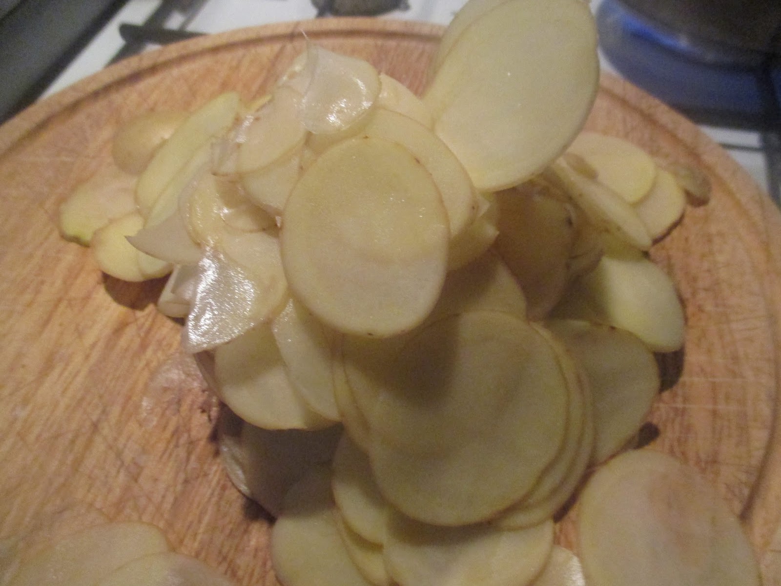 Ich habe das in drei Etappen gemacht, damit die Kartoffelscheiben genug Platz im Topf haben.