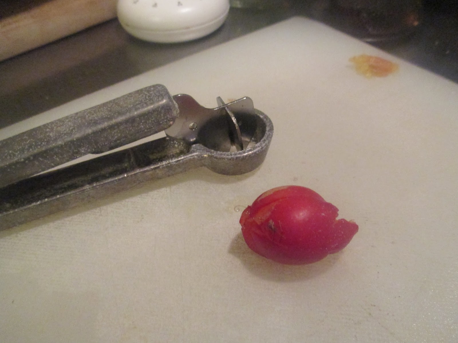 Mirabellen entsteinen. Man kann dafür natürlich auch jedes andere Obst nehmen, wie Kirschen, oder Pflaumen.