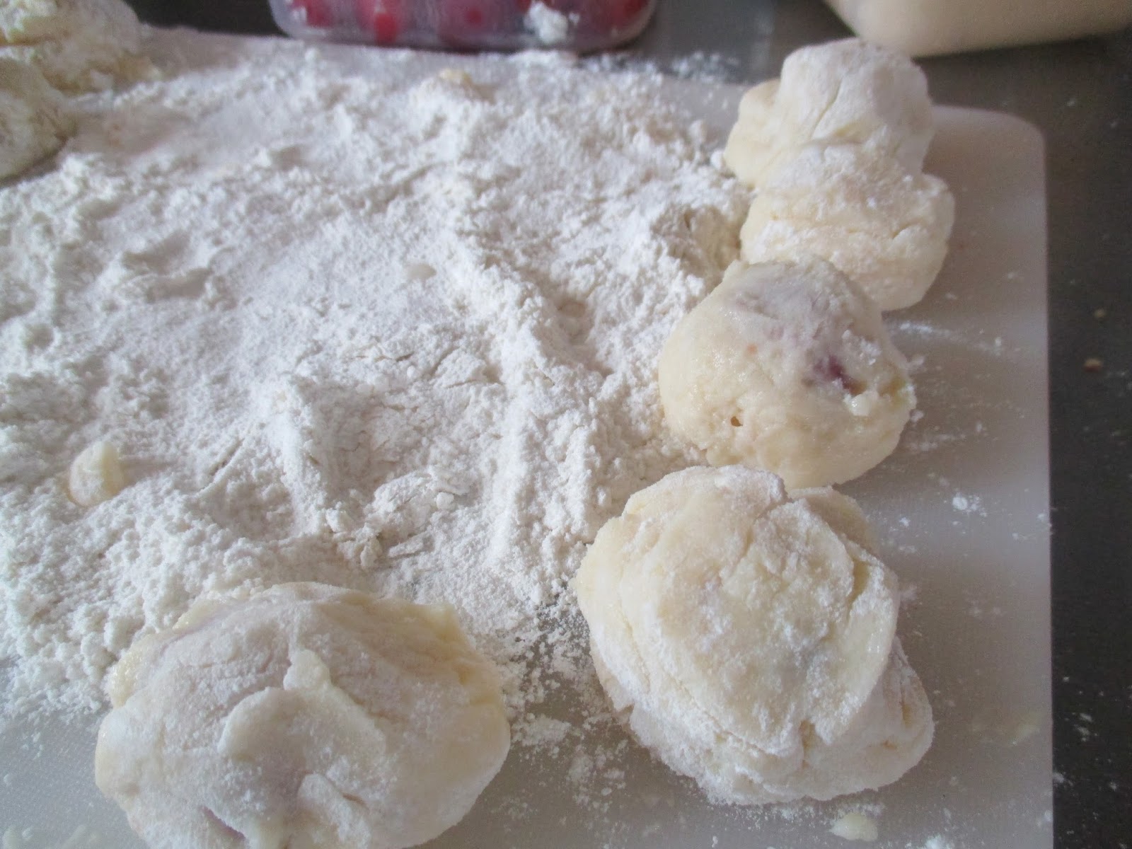 Ich bin erst darauf gekommen, als ich schon am Knödel formen war, dass es vielleicht cleverer wäre, die gleich ins heiße Wasser zu geben, statt sie noch einmal zwischen zu lagern. denn dann verlieren sie wieder ihre Form.