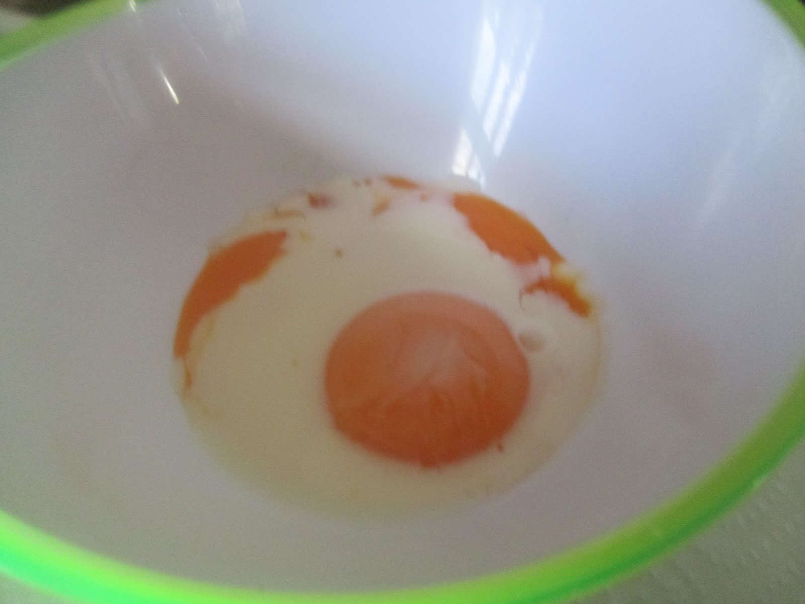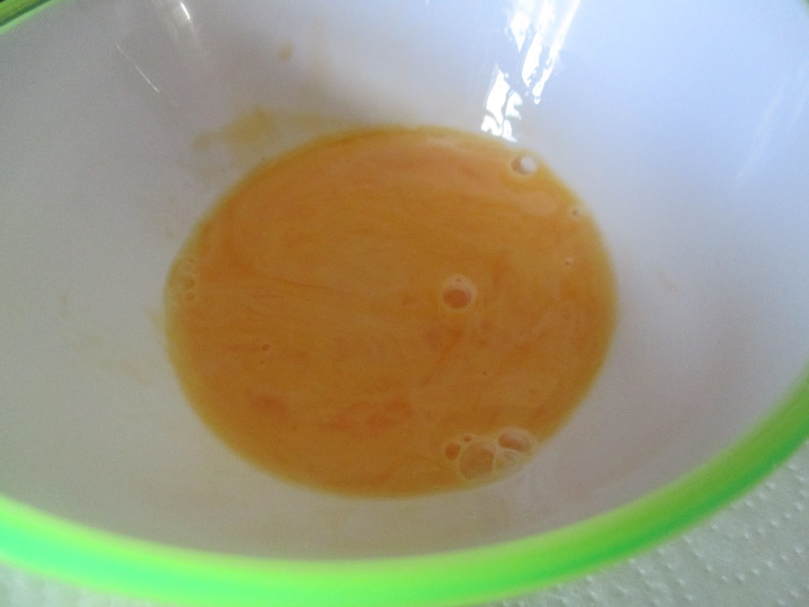 Weil die Farbe noch schöner wird und weil es dem Projekt dient, habe ich zwei Eigelb getrennt.