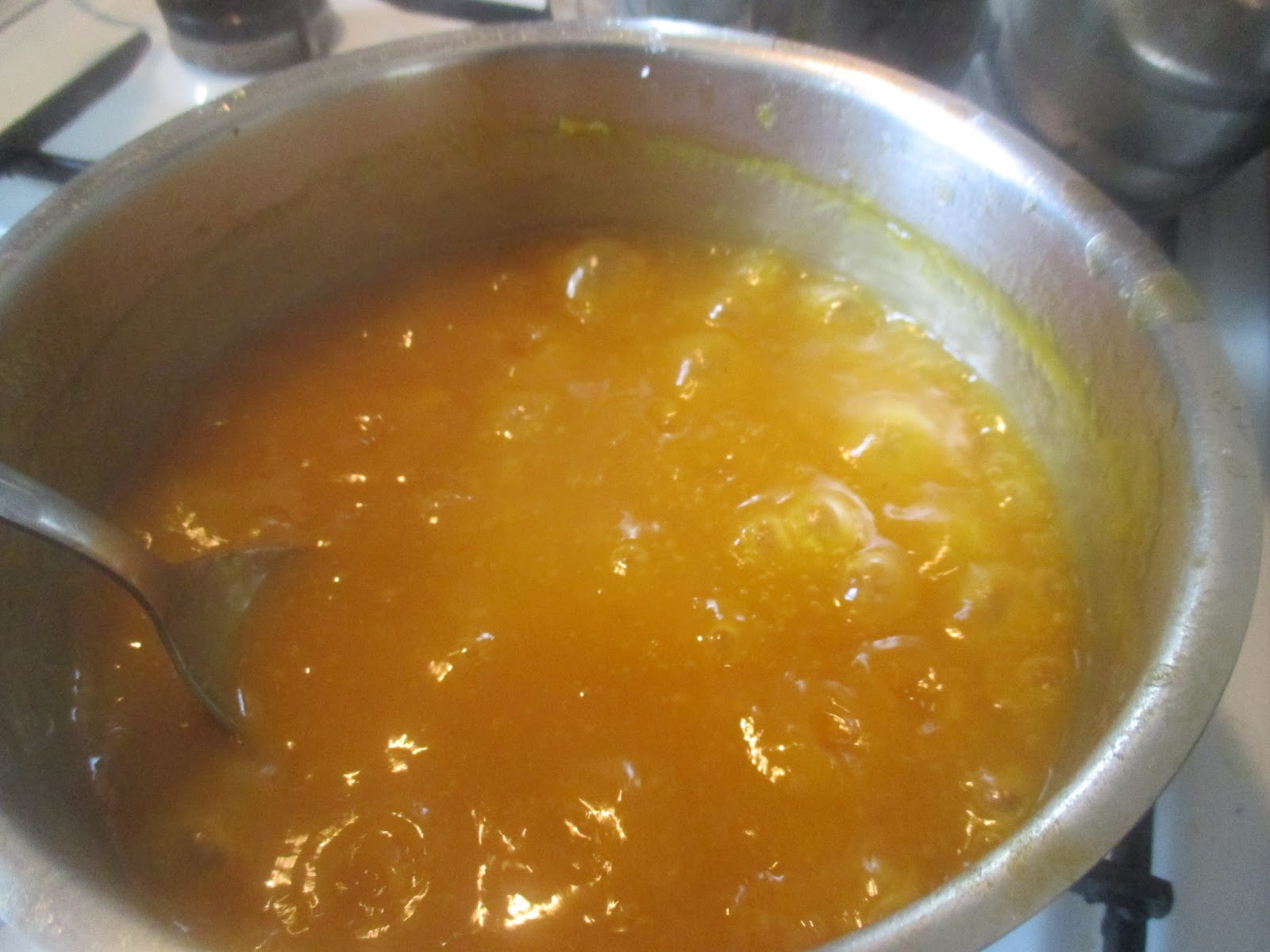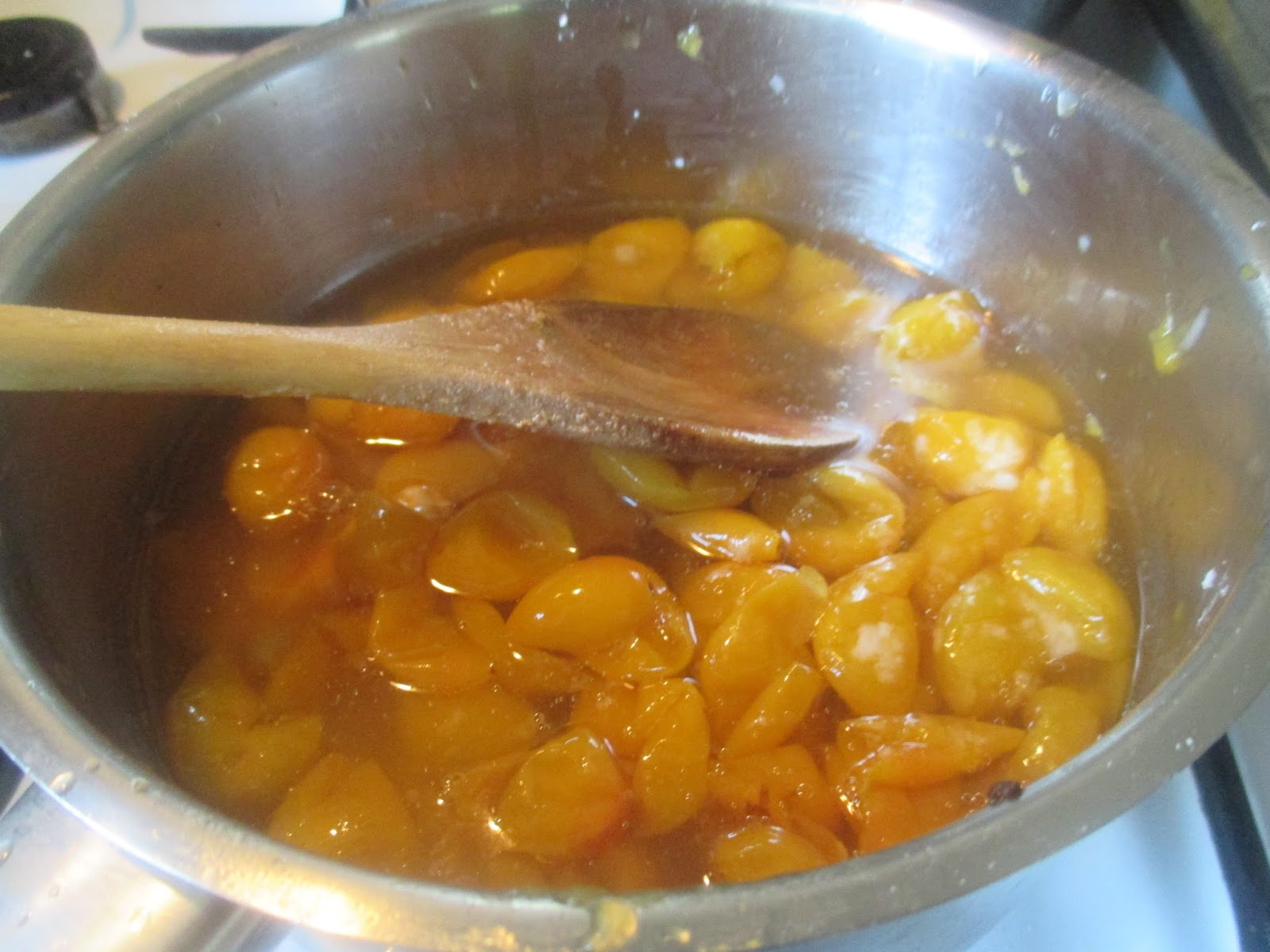 Wenn die Flüssigkeit merklich dicker wird ist es gut, sonst noch mehr Speisestärke einrühren. Wenn die Mirabellensoße abgekühlt ist, soll sie richtig dickflüssig sein, damit sie am Kuchen kleben bleibt und nicht zu dünnflüssig wegläuft.