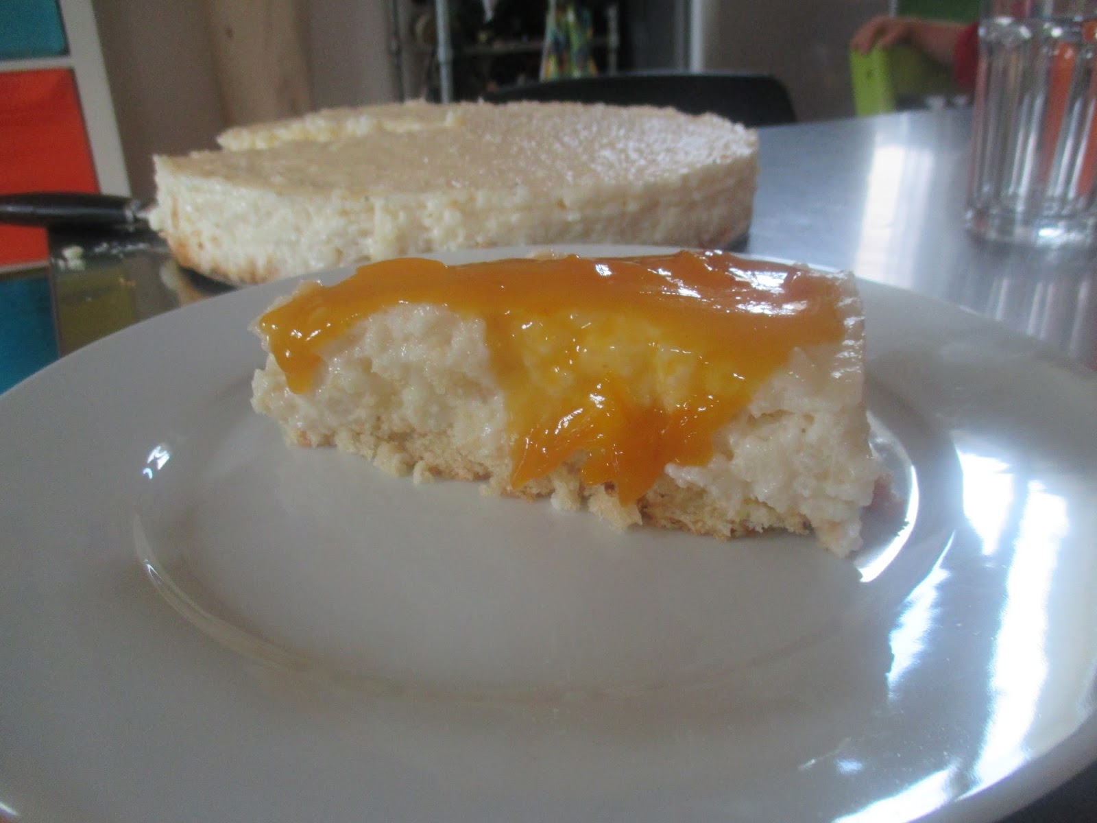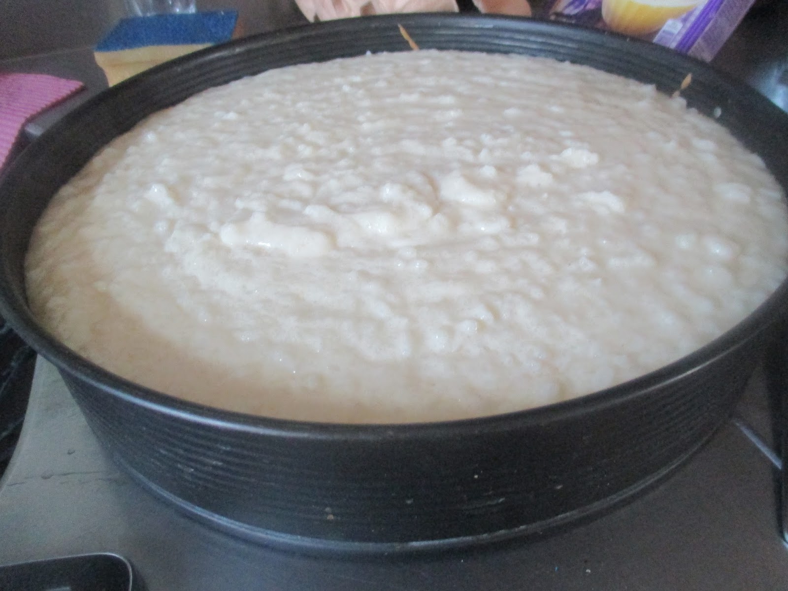 Sieht aus wie gemalt. Schön fest geworden, ohne Risse, aber auch nicht zu wabbelig, so dass der Milchreiskuchen schnittfest ist.