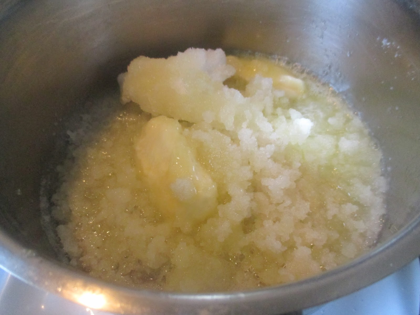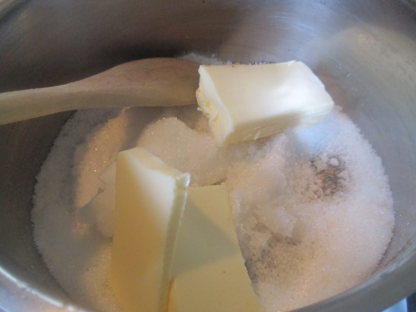 Hier schmilzt erst die Butter und dann der Zucker, wenn er seine Schmelztemperatur erreicht hat.