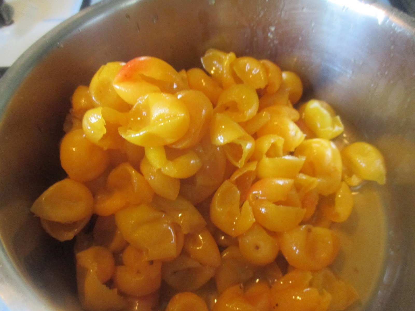 Für die Fruchtsoße habe ich Mirabellen frisch vom Baum genommen. Bei 500 Gramm habe ich mich auch nicht großartig angestellt, die zu entkernen. Sonst neige ich ja auch mal zur flotten Lotte, aber meine Erfahrung sagt mir, dass man mehr im Mund hat, wenn man die komplette Frucht mit Schale, aber ohne Kerne verwendet. Die Soße ist so lecker, davon kann man auch pauschal gleich ein Kilo Obst verarbeiten. Die werdet Ihr immer los.