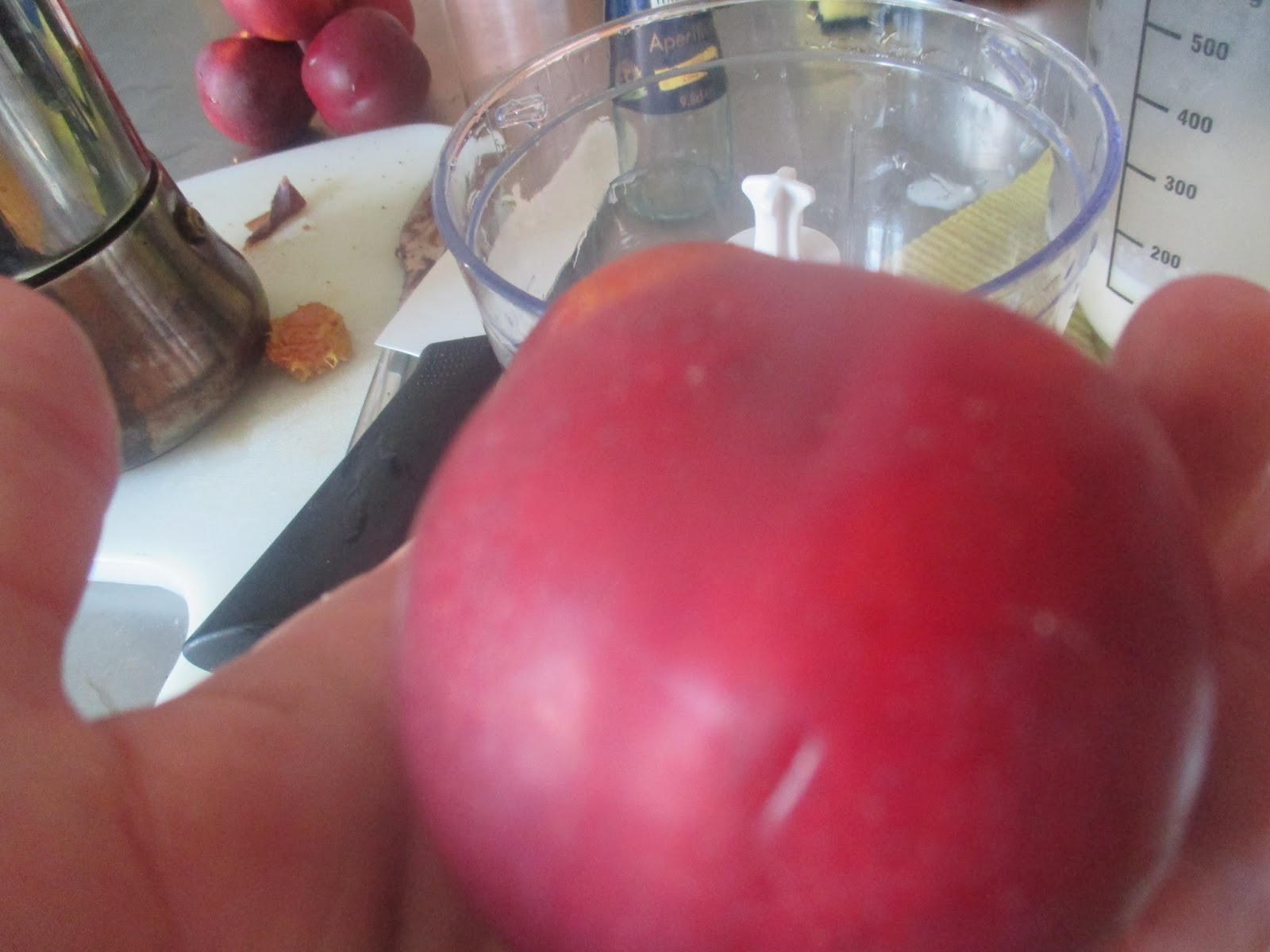 Die Nektarinen sind jetzt zerschreddert und man hat ein leckeres Fruchtpüree