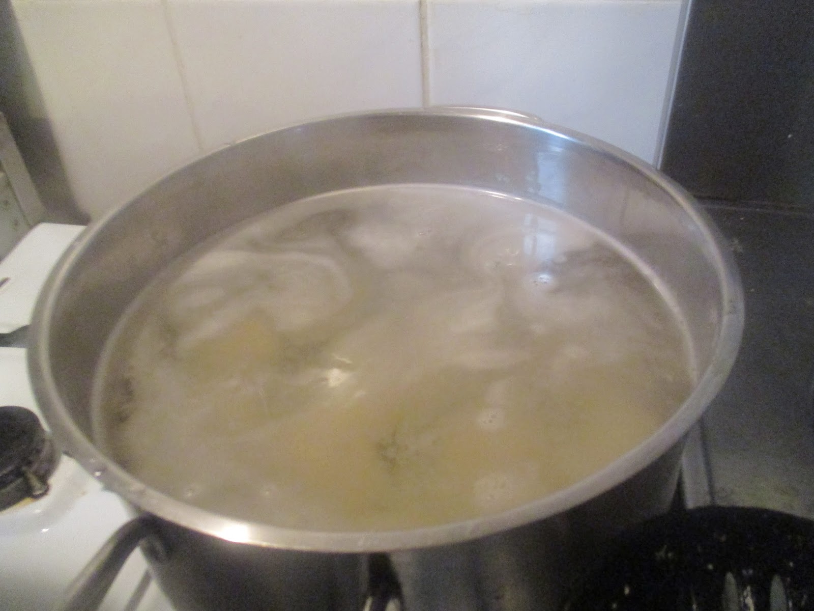 Einen großen Topf mit Salzwasser auf den Herd stellen und zum Kochen bringen.