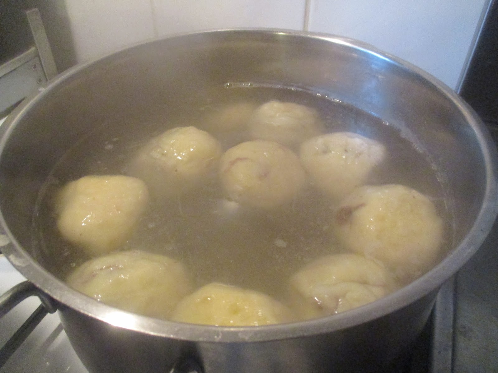 Die Kartoffelbälle steigen an die Wasseroberfläche auf, wenn sie gar gekocht sind.