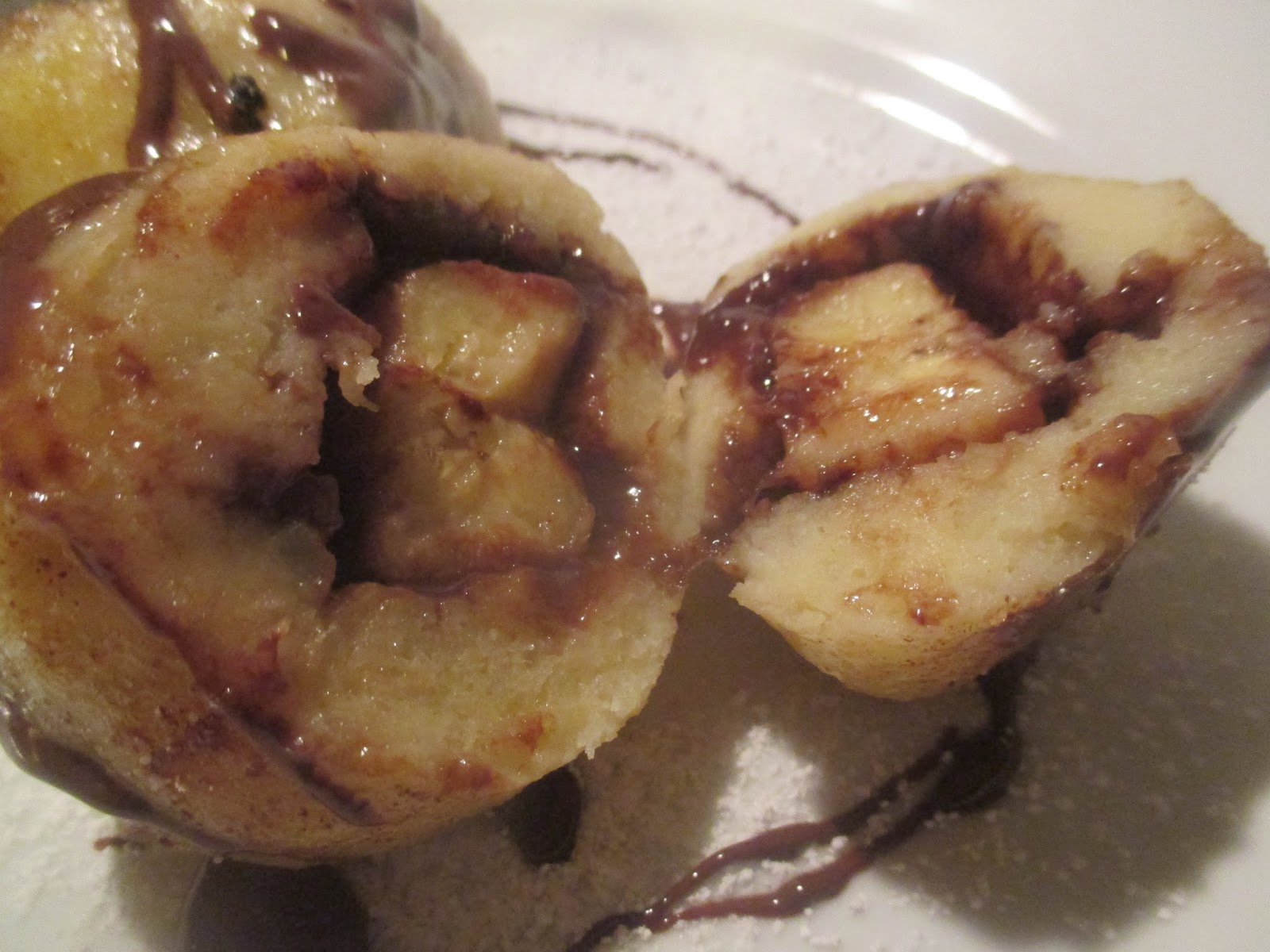 Das ist eine tolle Kombination, der zarte Kartoffelteig, die Schokolade und dazu die angenehm fruchtige Banane.