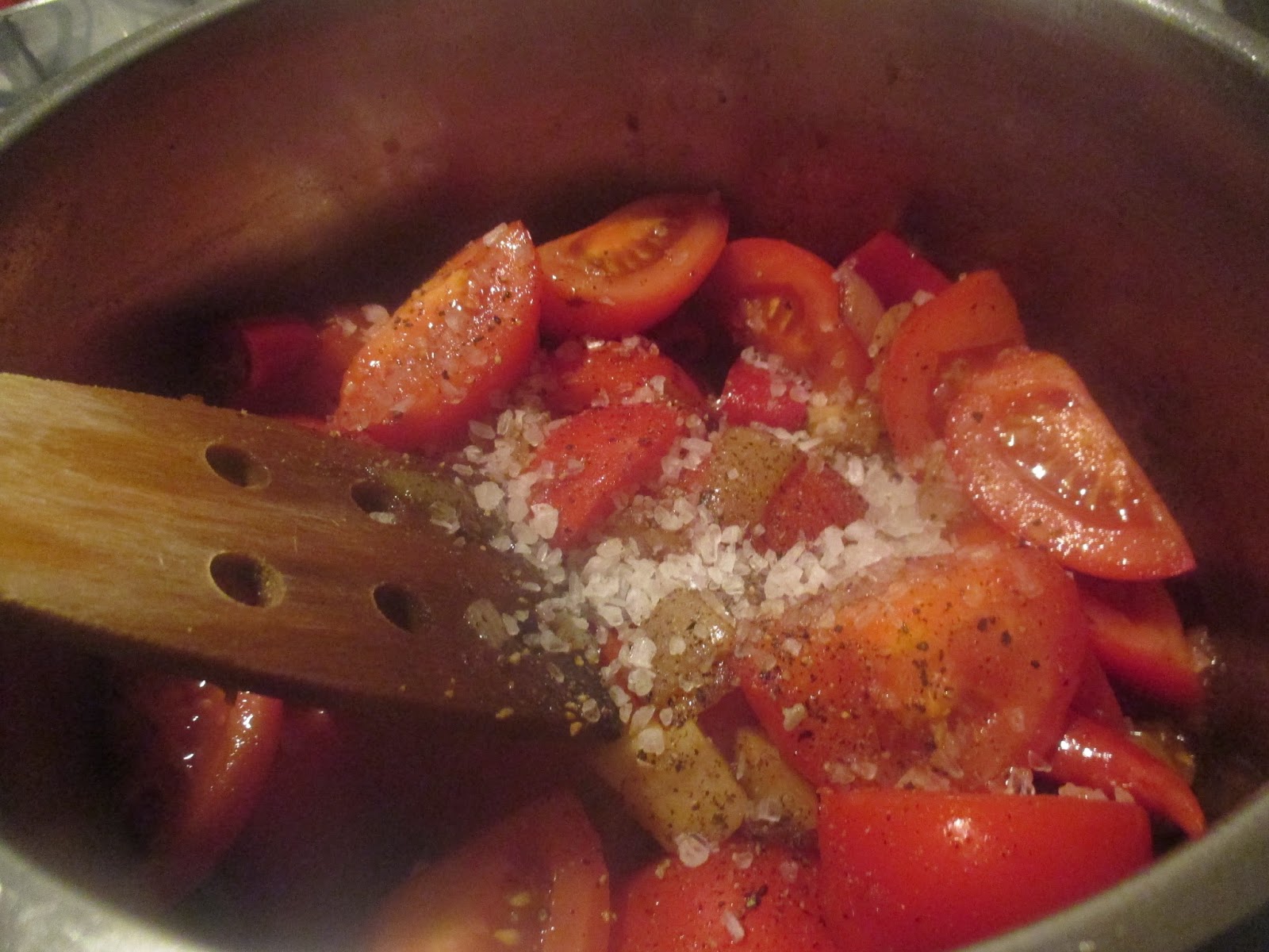 Wenn das Gemüse Farbe bekommt, die Tomaten dazu geben.