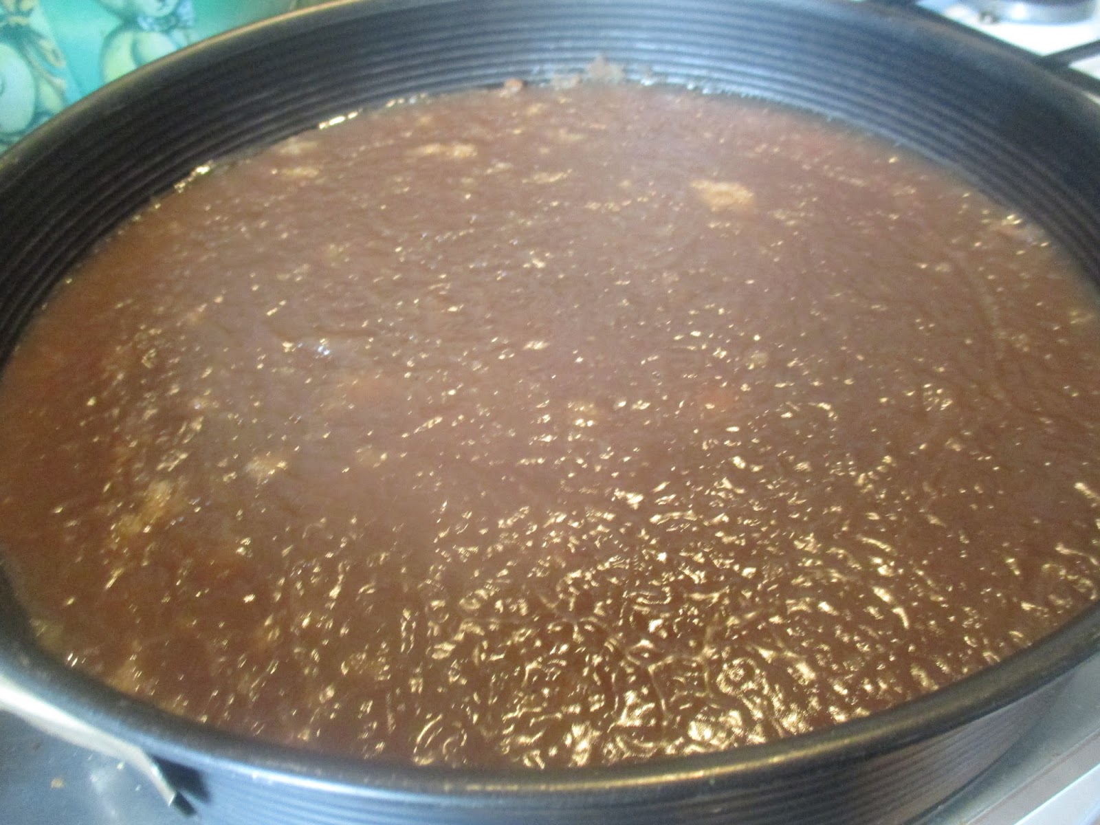 Dann kommt die Cola vom Herd und man soll sie ein bisschen auskühlen lassen. Ich hatte aber noch etwas mit meinem Kindern auf dem Zettel und alle drängelten mich zum Aufbruch. Deswegen habe ich die Flüssigkeit stumpf über den Kuchen gekippt und unterwegs hinterher fünf Stunden lang Blut und Wasser geschwitzt, ob die Colamasse auch fest wird, bis wir wieder von unserem Sonntagsausflug zuhause sind. Leider habe ich keine Möglichkeit den Kuchen im Kühlschrank zu lagern, weil der immer knallvoll und dafür kein Platz ist. Das wäre auch noch mal mein Tipp, den Kuchen in den Kühlschrank zu stellen, auch später, wenn er fertig ist, falls Ihr den nicht gleich ratzfatz verspeist.