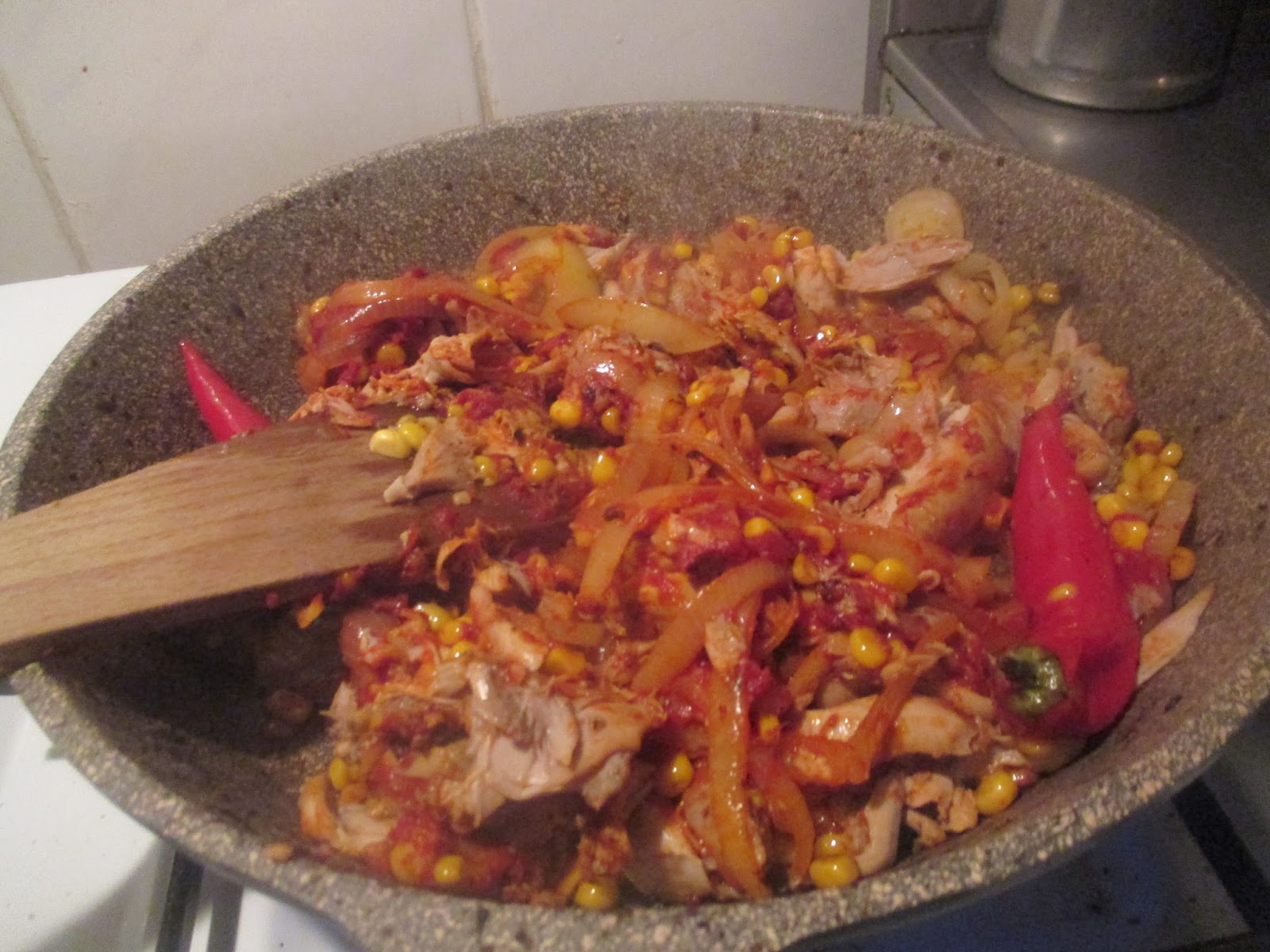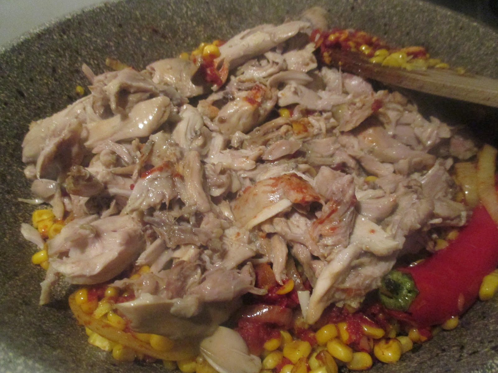 Hühnerfleisch das sich reimt, mit Mais und Reis
