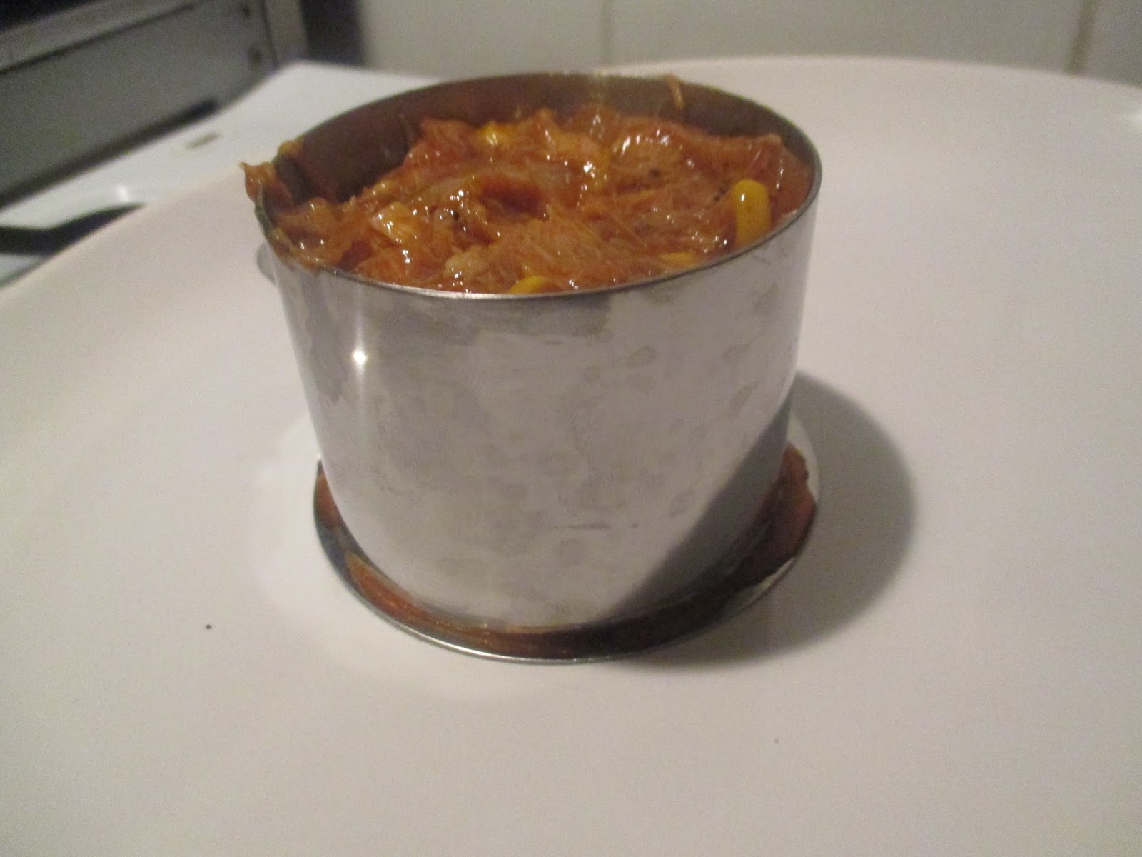 Wenn Ihr keinen Servierring habt, könnt Ihr auch eine Kaffeetasse nehmen ud so dekorative Türmchen auf dem Teller errichten. Sowas kostet aber nur 5 Euro, ist also nicht wirklich schlimm.