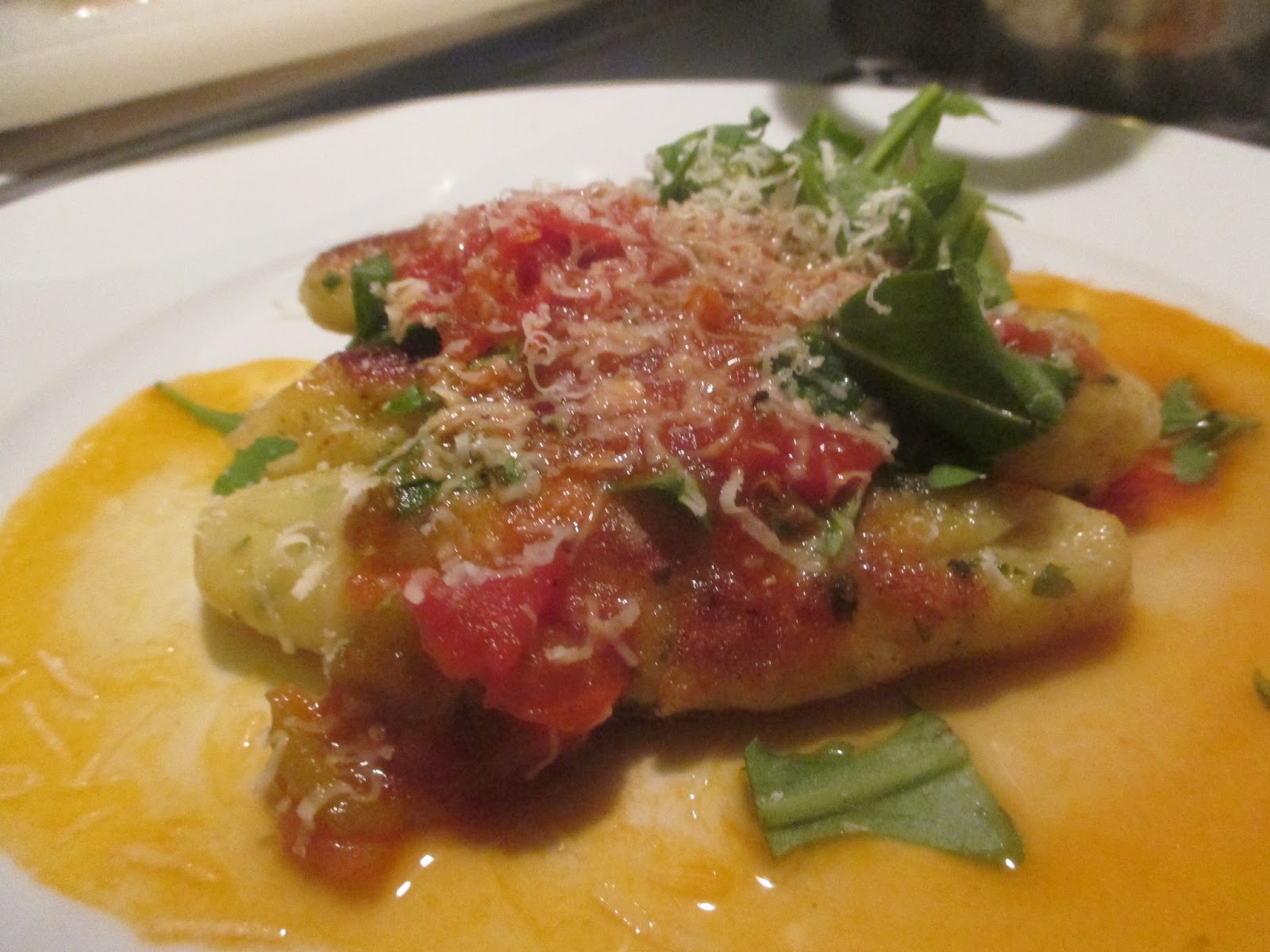 Schmeckt total lecker. Der Kartoffelteig ist DER Knaller und dazu der frische Rucola, der Käse und die Tomatensoße. Da kommt echtes Mittelmeerfeeling auf, na ja zumindest Gardasee.
