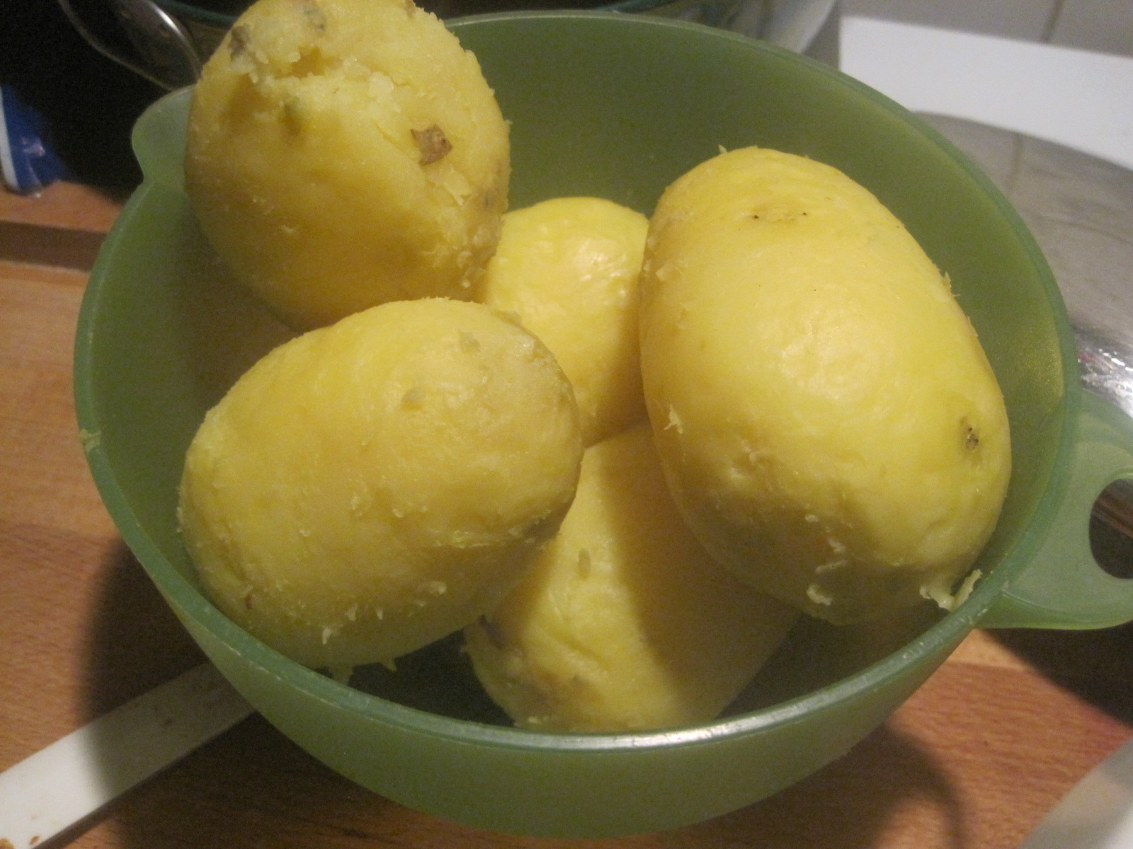 Ich habe ziemlich dicke Kartoffeln verwendet, deswegen habe ich die dreißig Minuten gekocht. Wenn sie kleiner sind, reichen auch zwischen 20 und 25 Minuten.