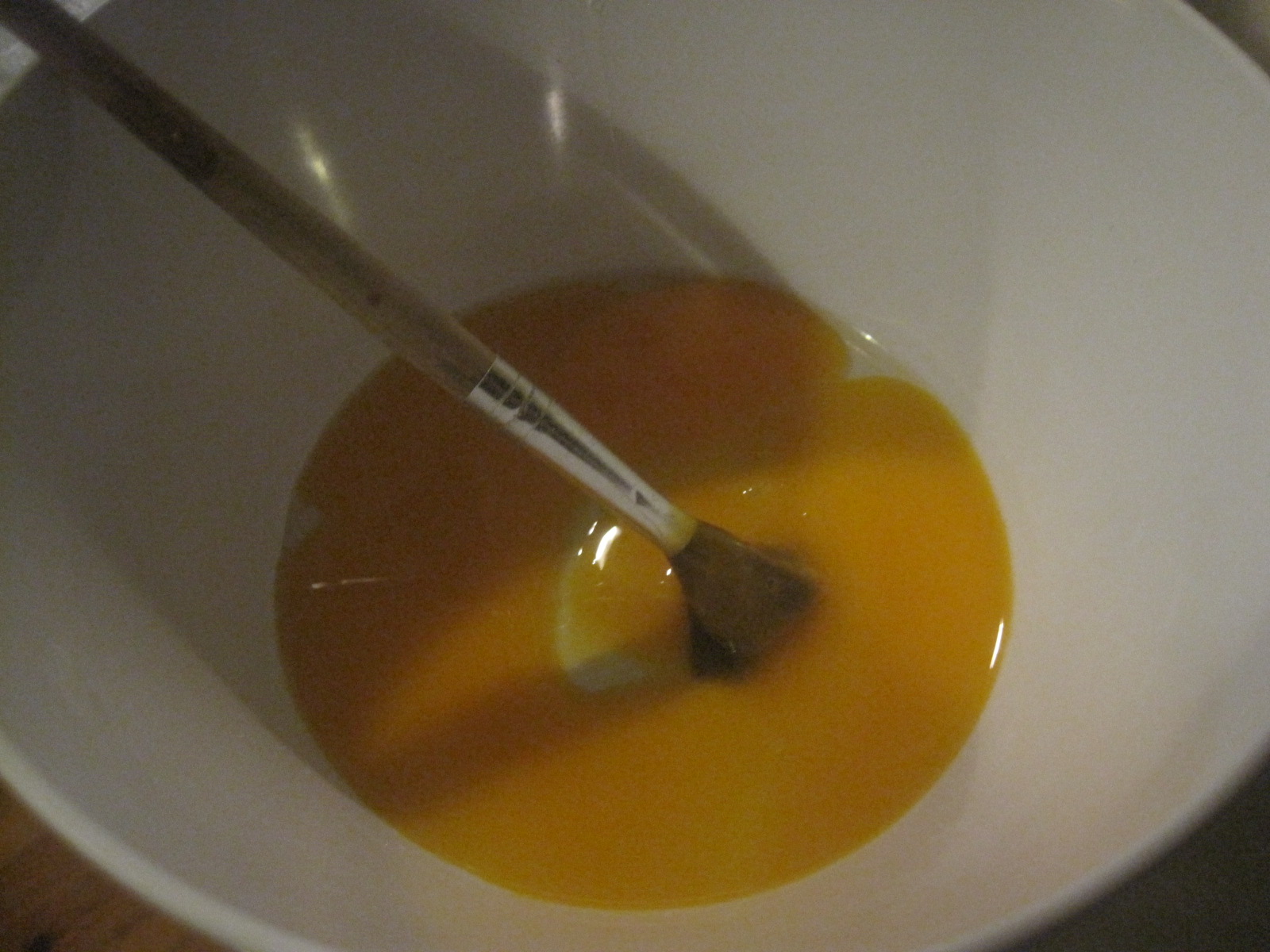 Die Herzoginnenkartoffeln sehen nach dem Backen deutlich besser aus, wenn man sie von oben mit Eigelb bepinselt.