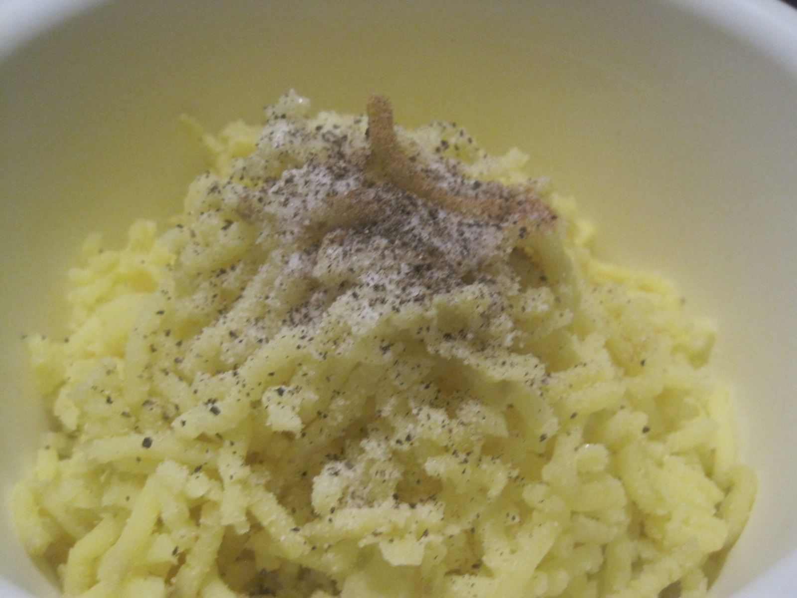 Die Kartoffeln werden in stark gesalzenem Wasser als Pellkartoffen zubereitet. Für Kartoffelteig aller Art bevorzugen Profis mehligkochende Kartoffeln, aber ich nehme meistens festkochende. Das einzige was wichtig ist, ist dass man die Kartoffeln mit Schale kocht, damit die Stärke in den Kartoffeln bleibt und beim Kochen nicht ausgewaschen wird.