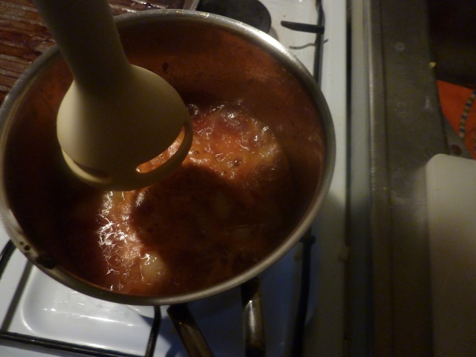 Nach 15 Minuten sind die Zutaten so weich, dass man sie mit dem Pürierstab gut zerkleinern kann.