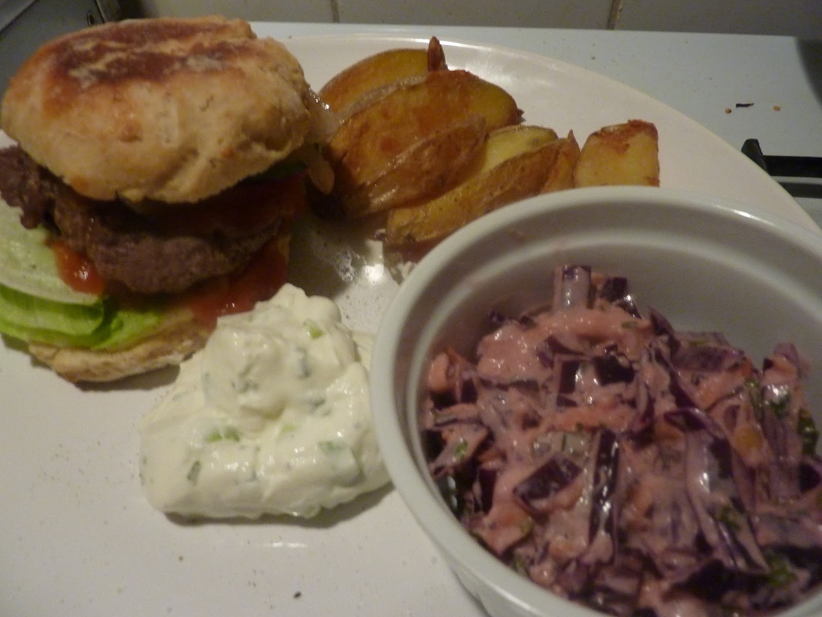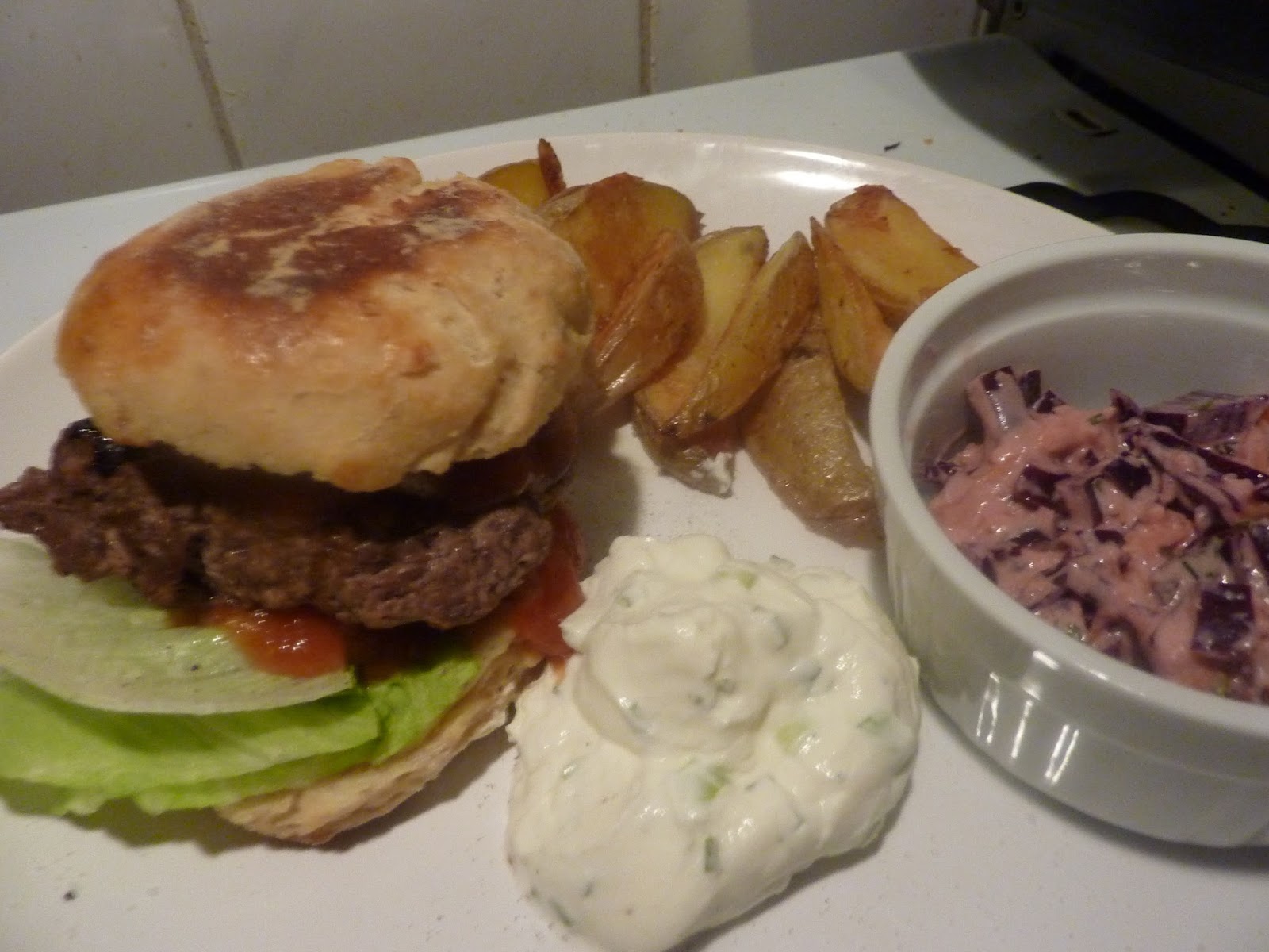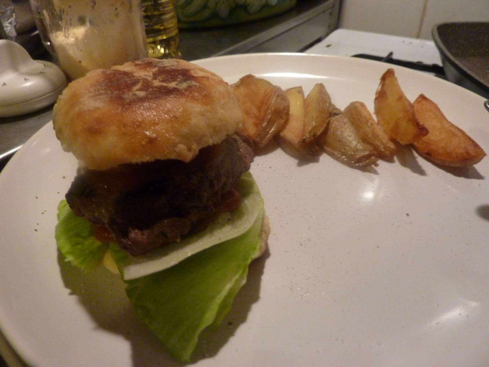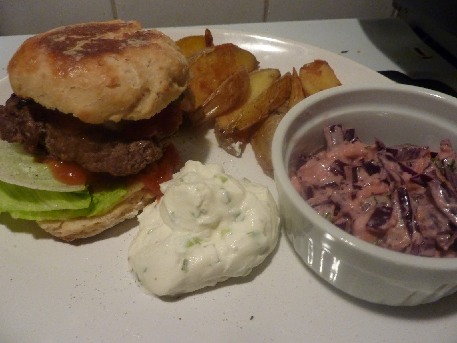 Vieles lässt sich zeitversetzt vorbereiten, also fällt die Arbeit nicht zwanghaft komplett an einem Tag an. Durch die Einteilung fällt es auch nicht mehr so auf, was das für eine Muckelei ist, wenn man das mit der Zeit vergleicht, die so ein Presspappenburger, bei McDoof, oder Burger Würg braucht, zwischen der Bestellung und dem Zeitpunkt, wann man damit am Tisch sitzt. Wenn man so einen selbst gemachten Burger gegessen hat, will man den Rest auch nicht mehr. Mir fällt unter den Umständen echt nicht viel ein, was ich lieber esse, als so ein Gericht.