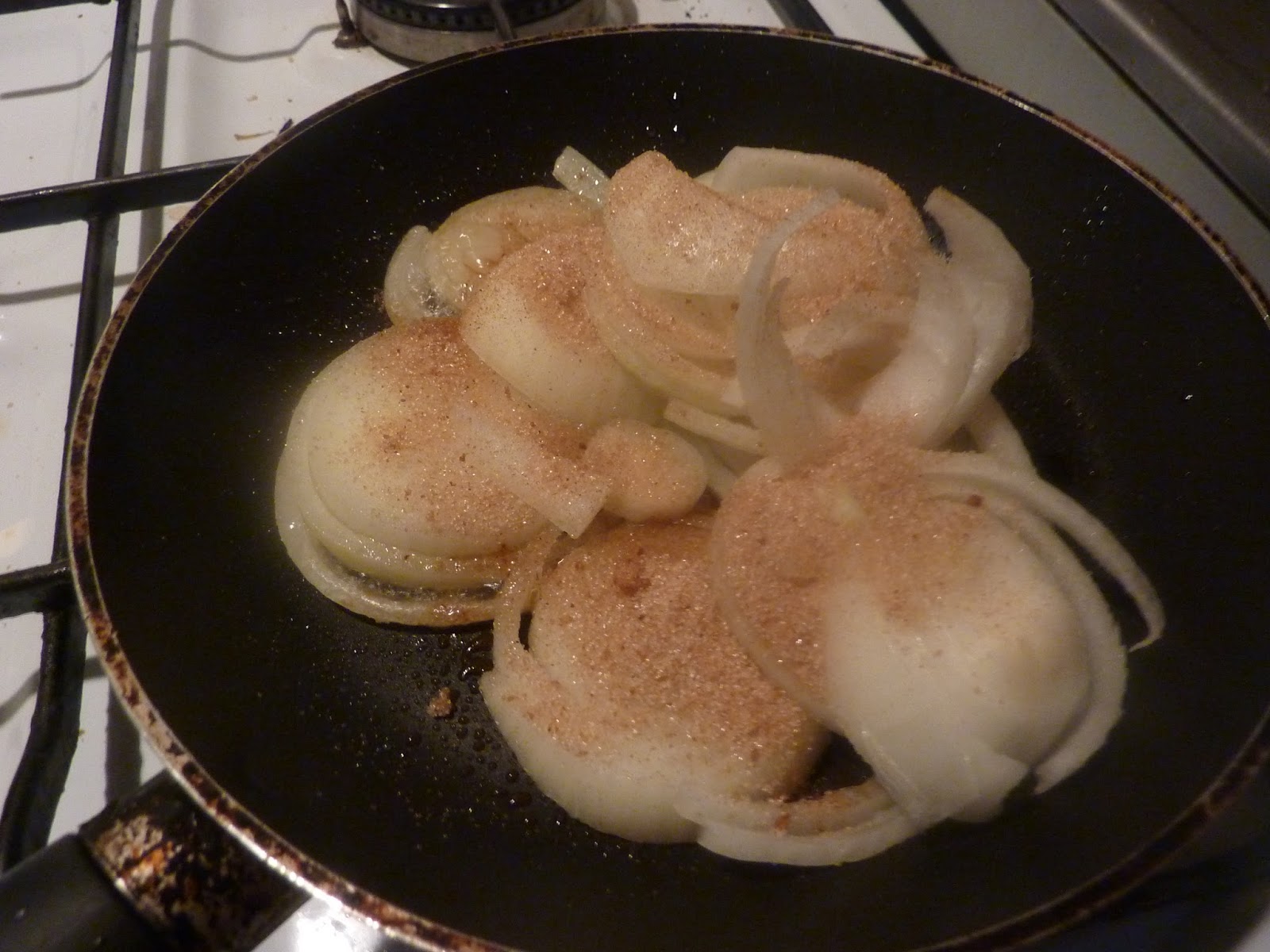 Die Zwiebeln nicht ganz bis zum Ende fertig braten, dann kann man sie zwischenzeitlich noch zur Seite stellen und brät sie erneut kurz auf, bevor der Burger montiert wird.