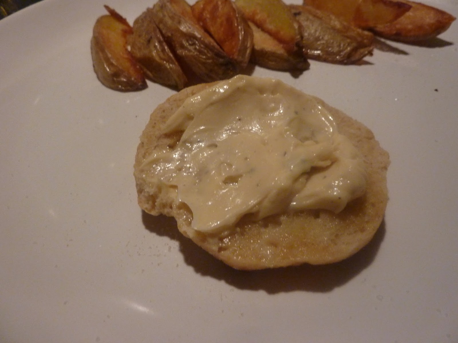 Kartoffelecken auf dem Teller dekorieren, jetzt erst salzen und ein wenig pfeffern, sonst neigen die Kartoffeln dazu labberig zu werden, wenn man sie schon vor dem Garen im Ofen würzt.