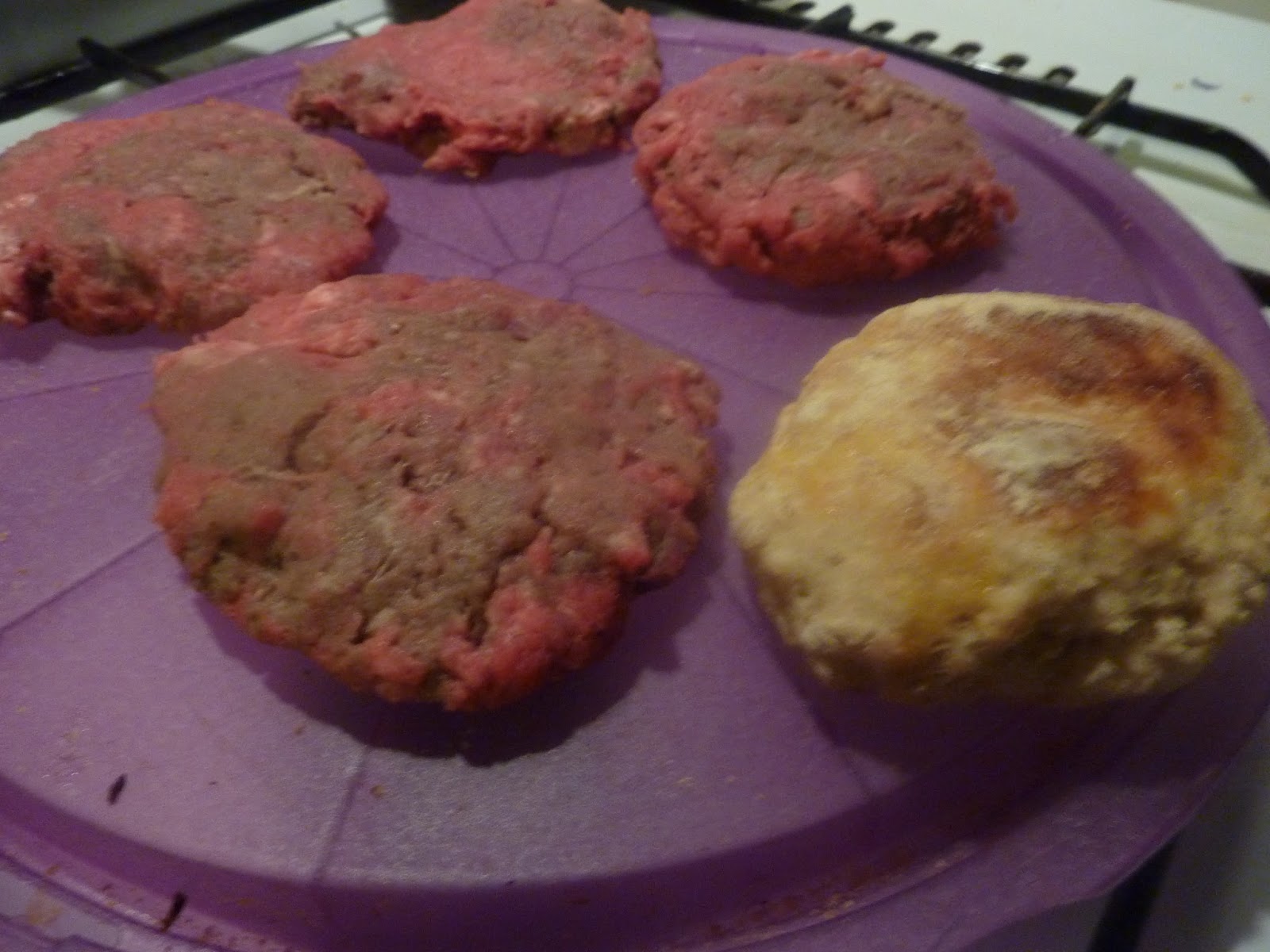 Ein Burgerbrötchen (Bun) als Muster nehmen, um zu wissen, wie groß die Burgerpatties werden müssen.